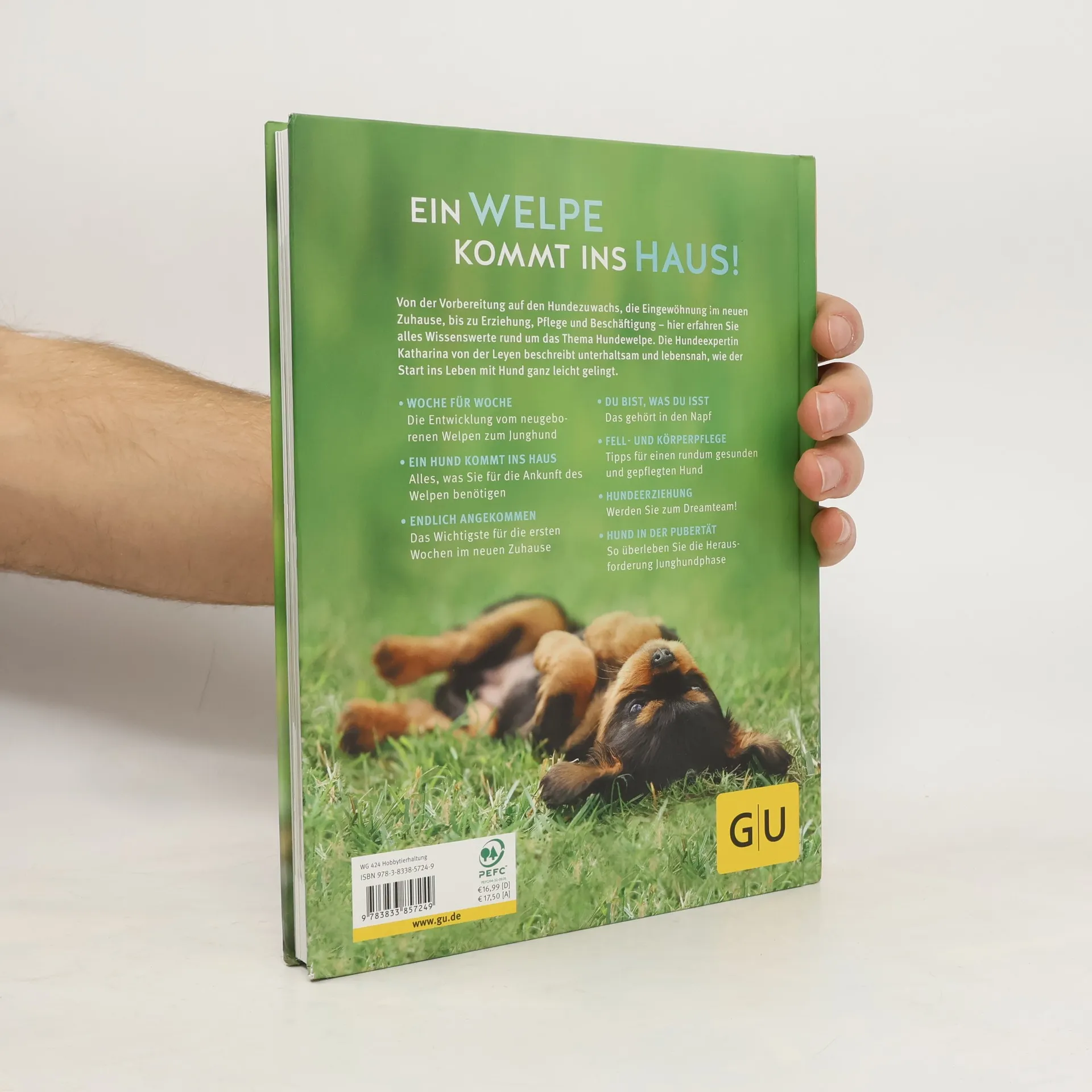 Ein Welpe kommt ins Haus! Von der Vorbereitung auf den Hundezuwachs, die Eingewöhnung im neuen Zuhause, bis zu Erziehung, Pflege und Beschäftigung - im Welpenpraxisbuch erfährt der Leser alles Wissenswerte rund um das Thema Hundewelpe. Die Journalistin und Hundeexpertin Katharina von der Leyen vermittelt dabei lebensnah und praxisorientiert, was man zum ersten Jahr mit dem Hundekind wissen muss. Ein perfekter Start ins Hundeleben!