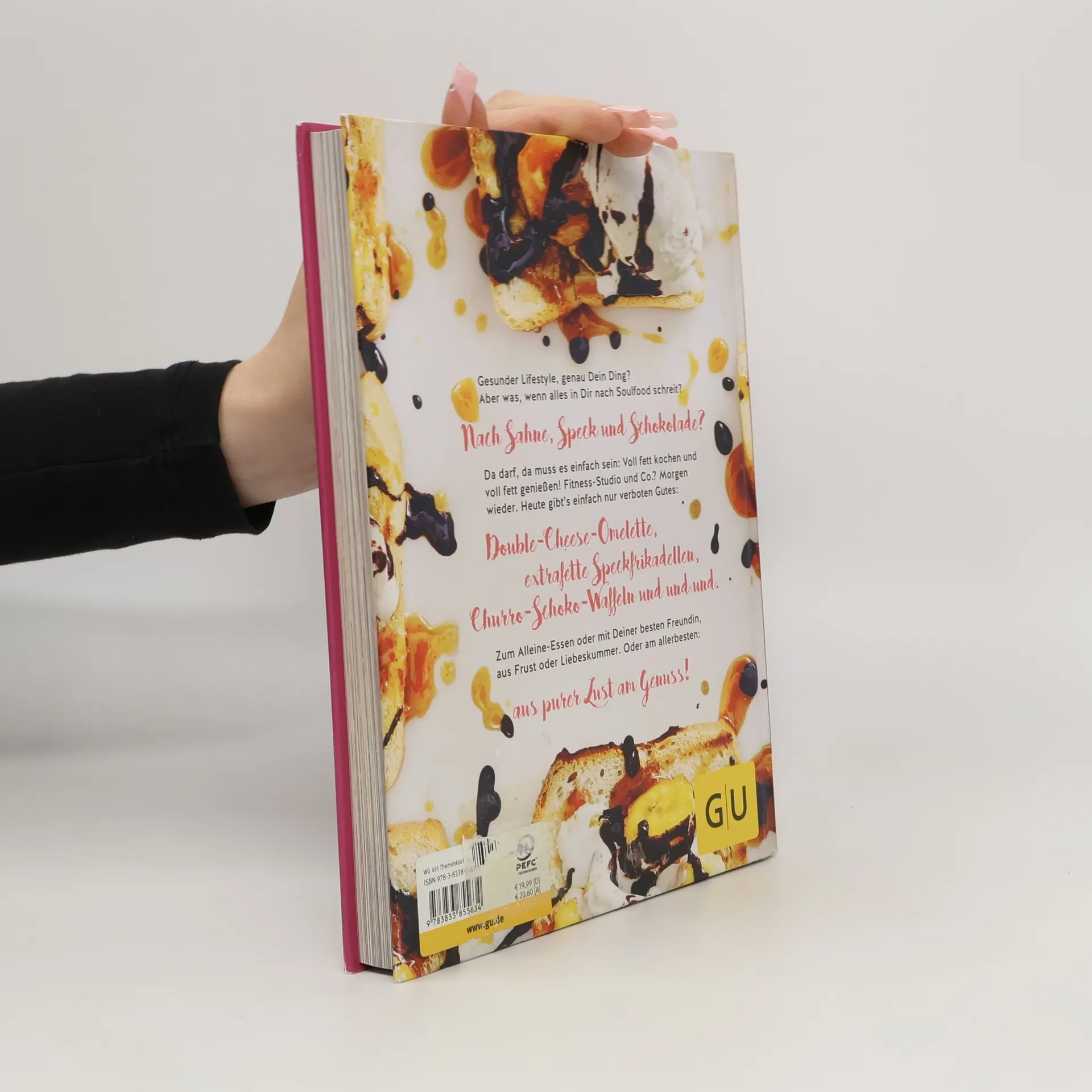Heute ist Ihr Cheat-Day – Schlemmen ausdrücklich erlaubt! Sie wachen auf und haben nur eines im Sinn: SCHOKOLADE. Mit Ihrem Soulfood-Kochbuch ist alles möglich. Gesund hin oder her – wer möchte morgens nicht auch mal zur Waffel statt zur Banane greifen? Schluss mit strenger Diät – heute steht Soulfood auf dem Programm. „Voll fett kochen“ ist für alle, die sich etwas Gutes gönnen wollen, ohne an Butter, Sahne oder Schokolade zu sparen. Hier kommen Soulfood-Rezepte, die glücklich machen! Beginnen Sie den Tag mit Churro-Waffeln und Schokosauce oder Nougat-Scones mit Himbeercreme. Für das Mittagessen gibt es Seelenschmeichler wie Nudelauflauf oder Cheesy-Crust-Pizza, die Sie garantiert aus jedem Mittagstief holen. Und wenn am Nachmittag der Hunger kommt, sind frittierte Apple Pies oder ein Oreo-Eisshake mit Schokosauce genau das Richtige. Am Abend steht auf dem Speiseplan, worauf Sie Lust haben – ohne Kalorien zählen. Gönnen Sie sich Käse-Kartoffelpüree mit Nussbutter oder Pasta mit Hackbällchen. Und wenn der Süßhunger nach Mitternacht kommt, ist Karamell-Banane-Toast mit Eiscreme die perfekte Lösung. Genießen Sie das Erholungsprogramm aus der Küche und lassen Sie sich verwöhnen!