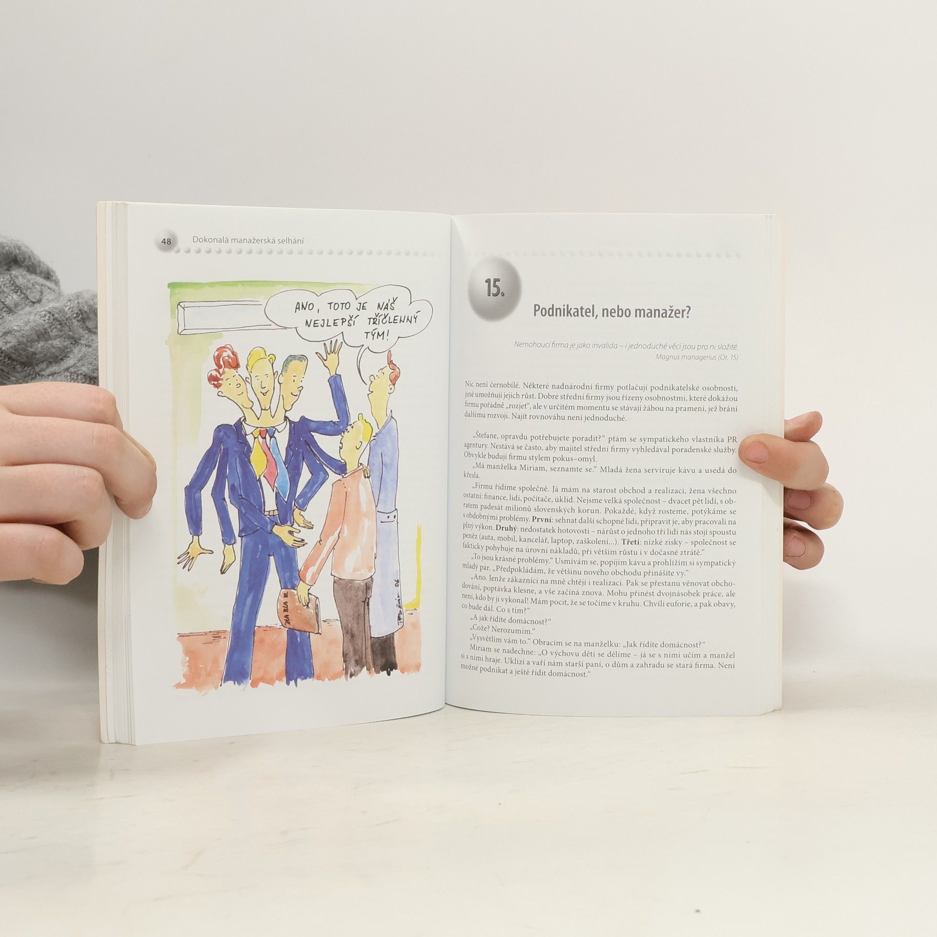 Jestliže hledáte recept na úspěšné řízení, chcete zjistit, zda jste perfektní manažer, nebo nalézt dokonalou manažerskou teorii platnou pro dvacáté první století, pak jste nenašli tu správnou knihu. Pokud vás ale zajímá, jak můžete použít osobní zkušenosti v manažerské praxi nebo se chcete z vlastních i cizích chyb poučit a využít je pro úspěšné řízení, určitě bude stát za to, si tuto knihu přečíst. V celkem 52 životních příbězích autor odhalí zajímavé souvislosti s manažerskými problémy. Ocitnete se uprostřed otevřených dialogů mezi manažerem a koučem. Pravdivé, poutavé a pestré příběhy vás nenechají vydechnout. Nebudete se nudit, ani když si knížku přečtete čistě pro radost a zábavu. Příběhy přinášejí poselství a zásady, které uplatníte nejen jako manažer, ale i v každodenním běžném životě.