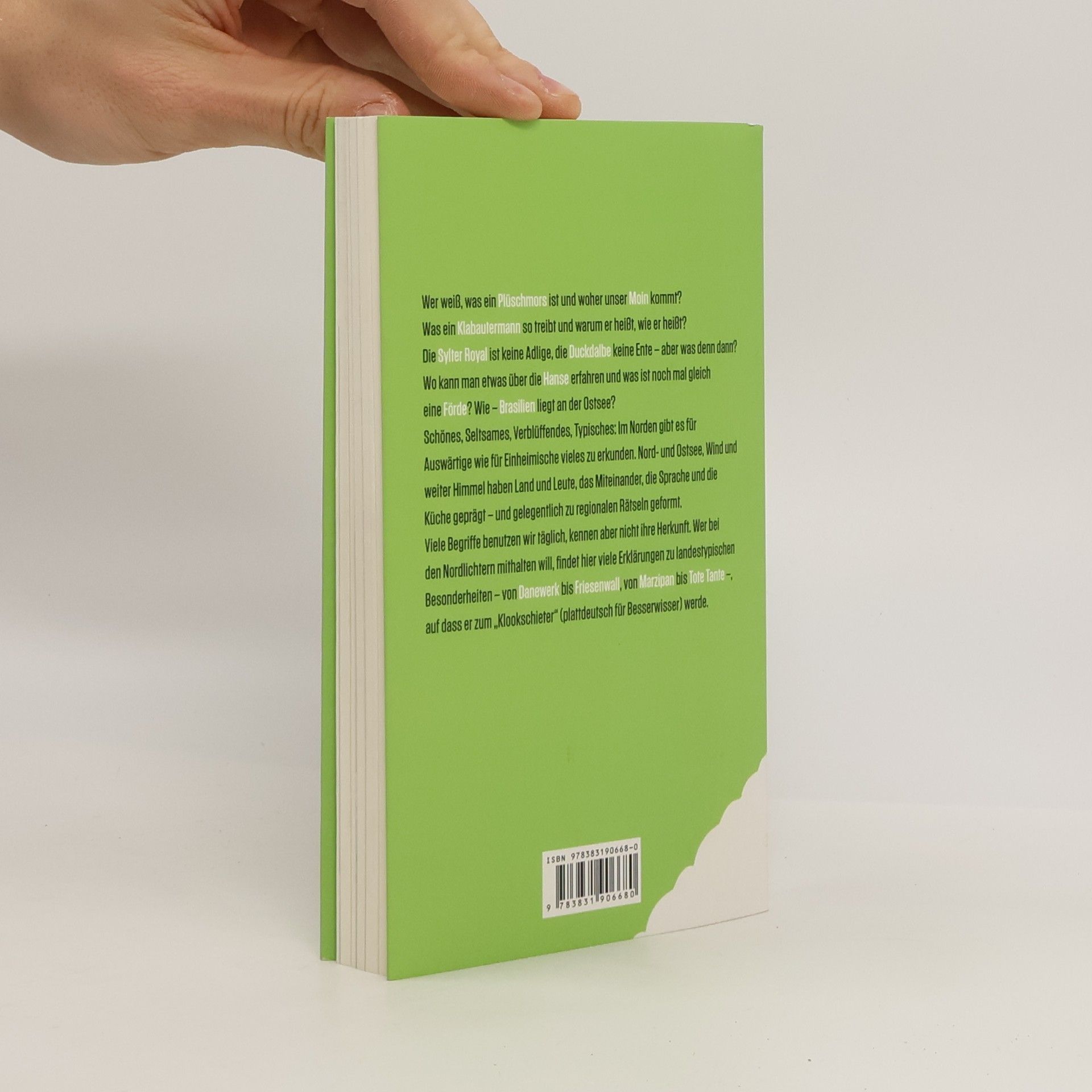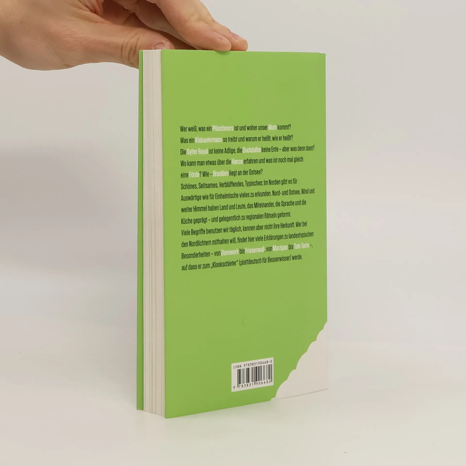 Wer weiß, was ein Plüschmors ist und woher unser Moin kommt? Die Sylter Royal ist keine Adelige, aber was denn dann? Was sind Donnerkeile und Duckdalben? Schwarzsauer und Mehlbüdel sind keine Schimpfwörter und was hat Alfred Nobel in Schleswig-Holstein zu schaffen? Warum der Klabautermann heißt, wie er heißt? Und wer ahnt, dass der älteste deutsche Kreuzweg ausgerechnet in Schleswig-Holstein zu finden ist? Schönes, Seltsames, Verblüffendes, Typisches: Im Norden gibt es - für Auswärtige wie für Einheimische - vieles zu erkunden. Nord- und Ostsee, Wind und weiter Himmel haben Land und Leute, das Miteinander, die Sprache und die Küche geprägt – und gelegentlich zu regionalen Rätseln geformt. Viele Wörter benutzen wir täglich, kennen aber nicht ihre Herkunft. Wer bei den Nordlichtern mithalten will, findet hier viele Erklärungen zu landestypischen Besonderheiten – auf das er zum „Klookschieter“ (plattdeutsch für Besserwisser) werde.