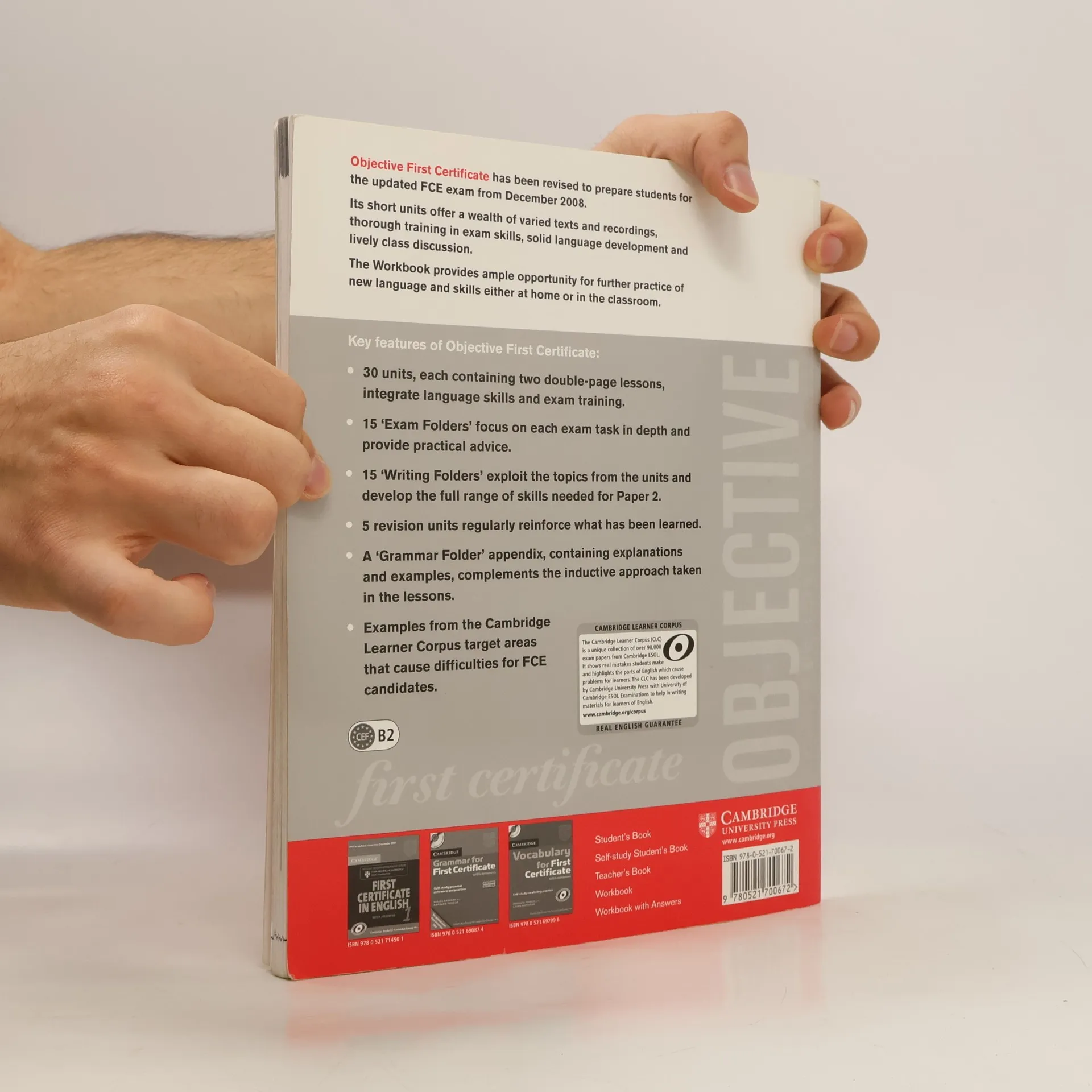 This popular First Certificate course has been updated to prepare students for the new examination syllabus introduced from December 2008. A clear organisation and fresh approach have already made it a popular route to success at FCE in many countries: thirty short units provide thorough training in exam skills, solid language development, and lively class discussion. The course is written by experienced authors who have an in-depth knowledge of the FCE exam, and understand the needs of both students and teachers alike. The Workbook with answers contains extra Reading, Writing, Grammar and Vocabulary practice. It is suitable for self-study students.