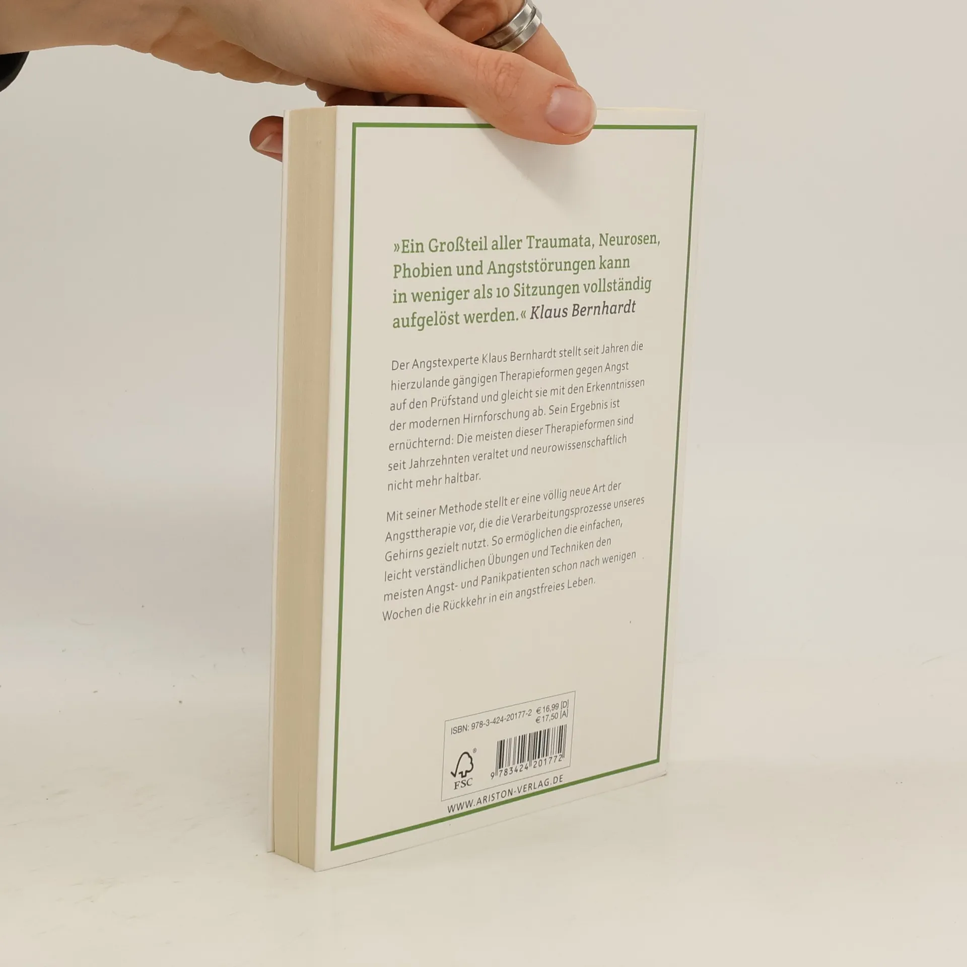 »Ein Großteil aller Traumata, Neurosen, Phobien und Angststörungen kann in weniger als 10 Sitzungen vollständig aufgelöst werden.« Klaus Bernhardt Der Angstexperte Klaus Bernhardt stellt die hierzulande gängigen Therapieformen gegen Angst auf den Prüfstand und gleicht sie mit den Erkenntnissen der modernen Hirnforschung ab. Sein Ergebnis ist ernüchternd: Die meisten dieser Therapieformen sind seit Jahrzehnten veraltet und neurowissenschaftlich nicht mehr haltbar. Mit seiner Methode stellt er eine völlig neue Art der Angsttherapie vor, die die Verarbeitungsprozesse unseres Gehirns gezielt nutzt, um Angst- und Panikpatienten schnell wieder in ein normales Leben zurückzuführen. Einer bemerkenswert hohen Zahl seiner Patienten hat er mit diesen Übungen und Techniken bereits nach wenigen Wochen die Rückkehr in ein angstfreies Leben ermöglicht.