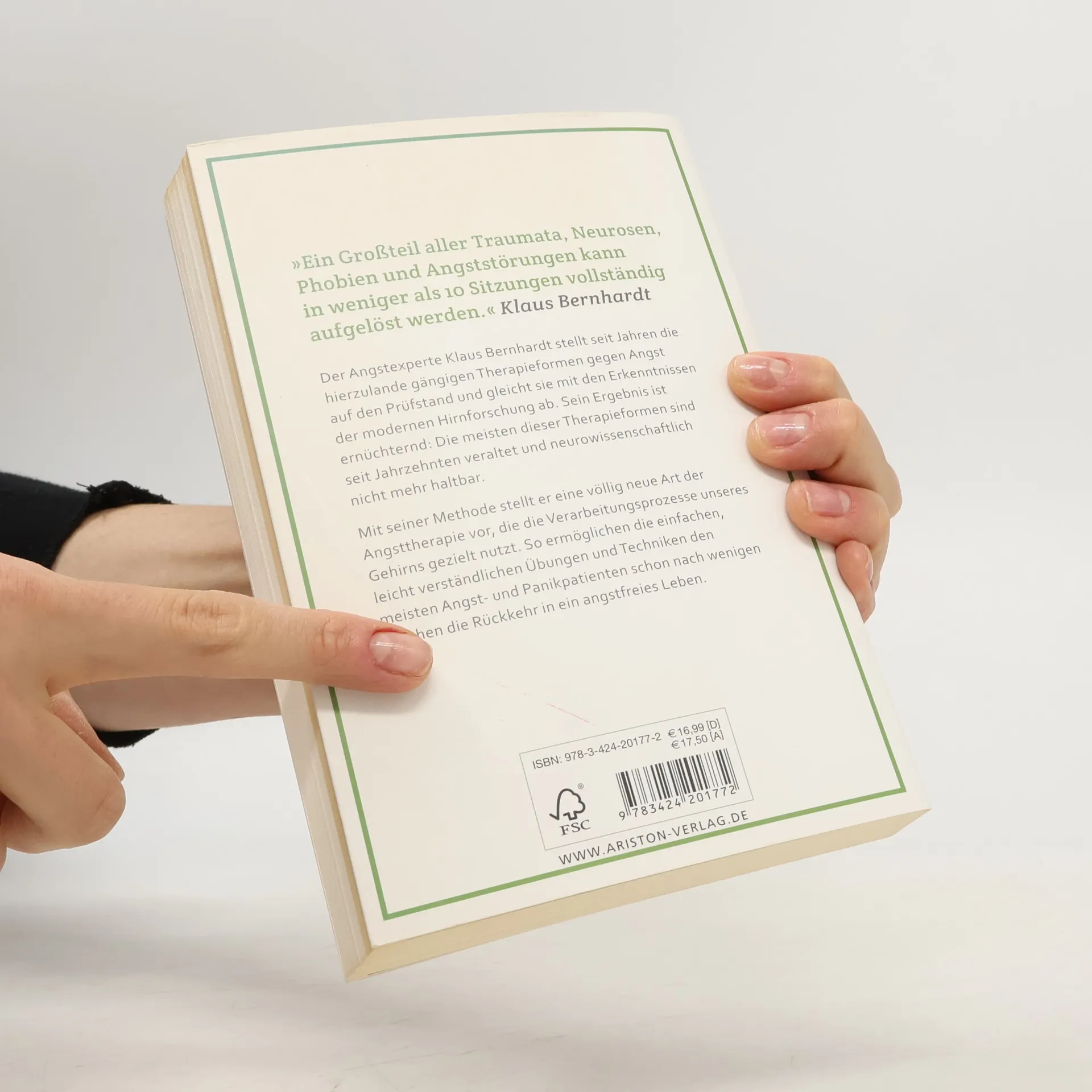 »Ein Großteil aller Traumata, Neurosen, Phobien und Angststörungen kann in weniger als 10 Sitzungen vollständig aufgelöst werden.« Klaus Bernhardt Der Angstexperte Klaus Bernhardt stellt die hierzulande gängigen Therapieformen gegen Angst auf den Prüfstand und gleicht sie mit den Erkenntnissen der modernen Hirnforschung ab. Sein Ergebnis ist ernüchternd: Die meisten dieser Therapieformen sind seit Jahrzehnten veraltet und neurowissenschaftlich nicht mehr haltbar. Mit seiner Methode stellt er eine völlig neue Art der Angsttherapie vor, die die Verarbeitungsprozesse unseres Gehirns gezielt nutzt, um Angst- und Panikpatienten schnell wieder in ein normales Leben zurückzuführen. Einer bemerkenswert hohen Zahl seiner Patienten hat er mit diesen Übungen und Techniken bereits nach wenigen Wochen die Rückkehr in ein angstfreies Leben ermöglicht.