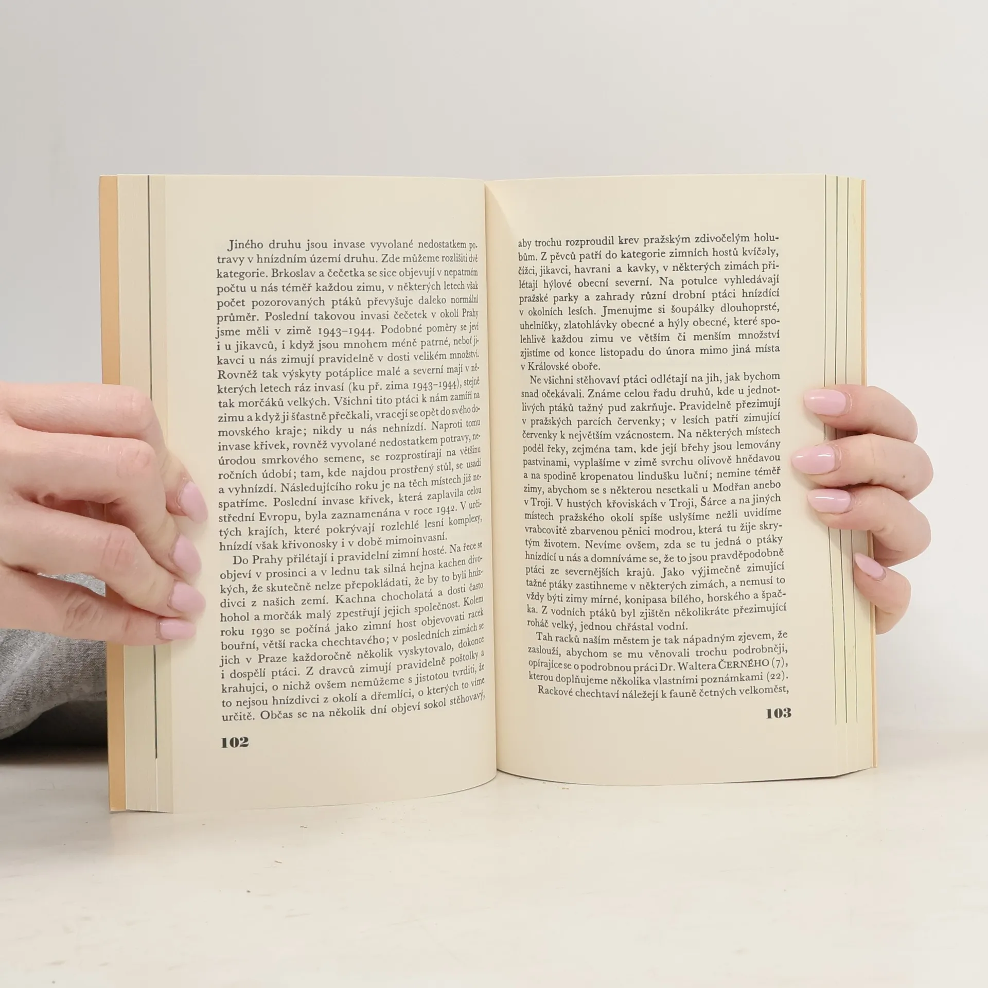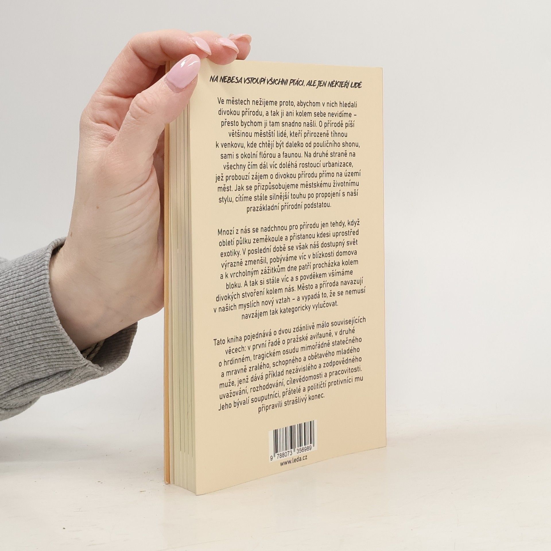Ve městech nežijeme proto, abychom hledali divokou přírodu, a přesto ji kolem sebe snadno najdeme. Městští lidé, kteří touží po klidu venkova, se stále více zajímají o přírodu ve městech, což souvisí s rostoucí urbanizací a touhou po spojení s naší přirozenou podstatou. Mnozí z nás objevují přírodu až při cestování do exotických míst, ale nyní se více zaměřujeme na okolí domova a na jednoduché radosti, jako je procházka kolem bloku. Město a příroda vytvářejí nový vztah, který se navzájem nevylučuje. Kniha se zaměřuje na pražskou avifaunu a tragický osud statečného mladého muže, jehož příklad nezávislého a zodpovědného myšlení je inspirativní. Autor, který se ornitologii věnuje od svých čtrnácti let, prezentuje výsledky svých pozorování od roku 1936. Poskytuje cenné informace o stavu ptactva v Praze v první polovině 20. století, což slouží jako výchozí materiál pro dnešní srovnání. Kniha zahrnuje poznatky z biologie ptáků, vztah ptáků a jejich prostředí a názory na ochranu ptactva. První část se věnuje pražským biotopům a ptačímu zpěvu, zatímco druhá část popisuje jednotlivé ptačí druhy, jejich prostředí a výskyt v Čechách a Praze.
