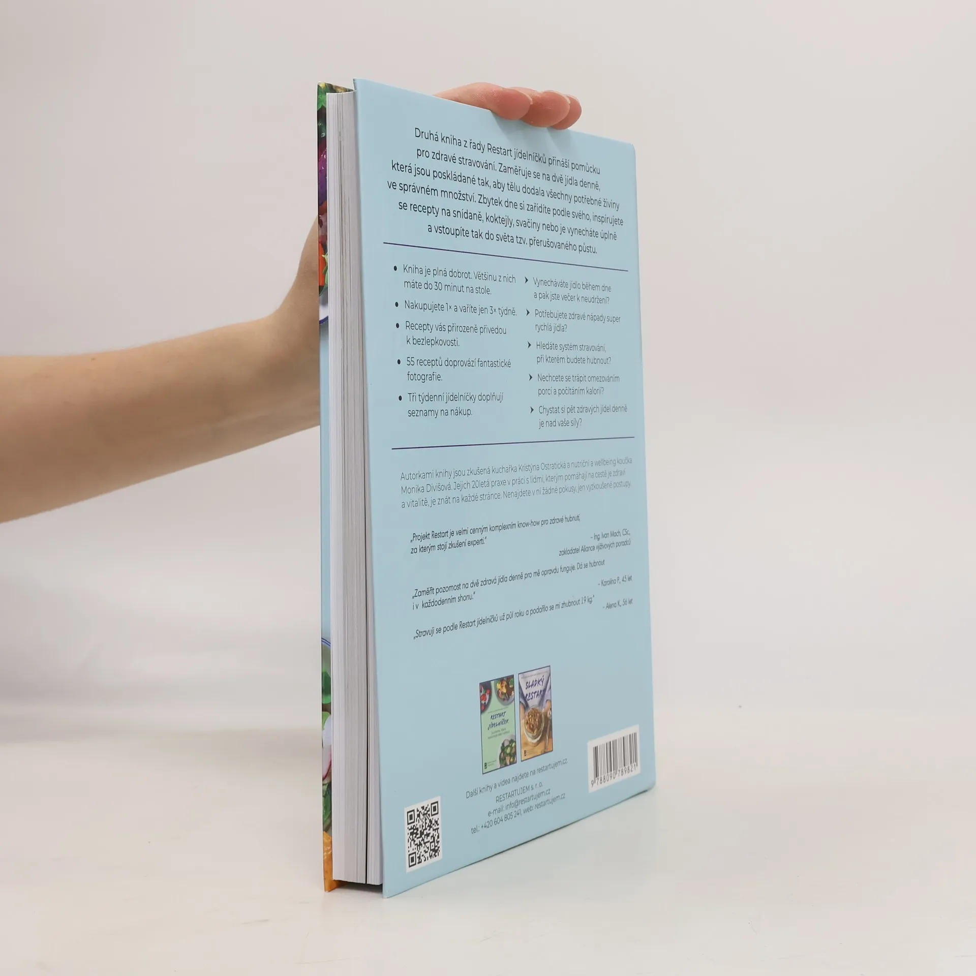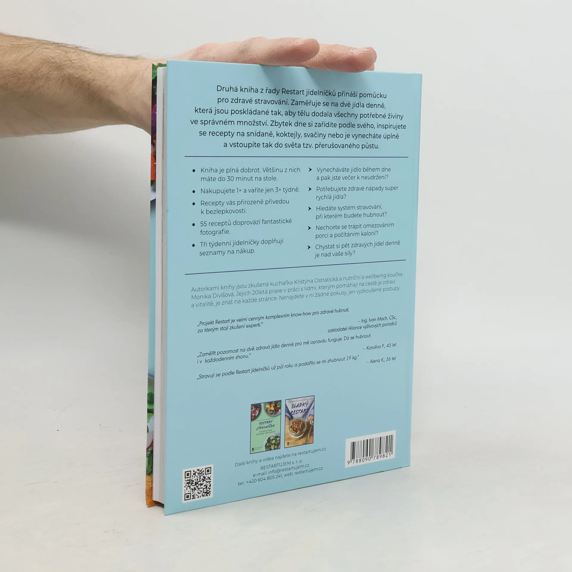 Druhá kniha z řady Restart jídelníčků přináší praktickou pomůcku pro zdravé stravování. Nenajdete v ní žádné extrémy, ale praktické kroky ověřené 20 lety nutriční praxe obou autorek. Zaměřuje se hlavně na dvě jídla denně, která jsou poskládaná tak, aby tělu dodala všechny potřebné živiny ve správném množství. Zbylá jídla si zařídíte podle svého, inspirujete se recepty na snídaně, koktejly, svačiny nebo je vynecháte úplně, a vstoupíte tak do světa tzv. přerušovaného půstu. Přináší systém jednoduchého přístupu ke zdravé kuchyni. Ačkoli jsou jídla jednoduchá na přípravu, jsou výtečná na chuť a splňují požadavky výživného pokrmu. Nečekejte žádné velké omezování ani počítání kalorií. Týdenní jídelníčky sestavené tak, abyste využili všechny nakoupené suroviny a nemuseli přemýšlet o tom, co zítra vařit, vám zároveň dávají prostor na rodinné oslavy nebo večeři v restauraci. I to k životu patří. Autorkami knihy jsou zkušená kuchařka Kristýna Ostratická a Monika Divišová, nutriční a wellbeing koučka.