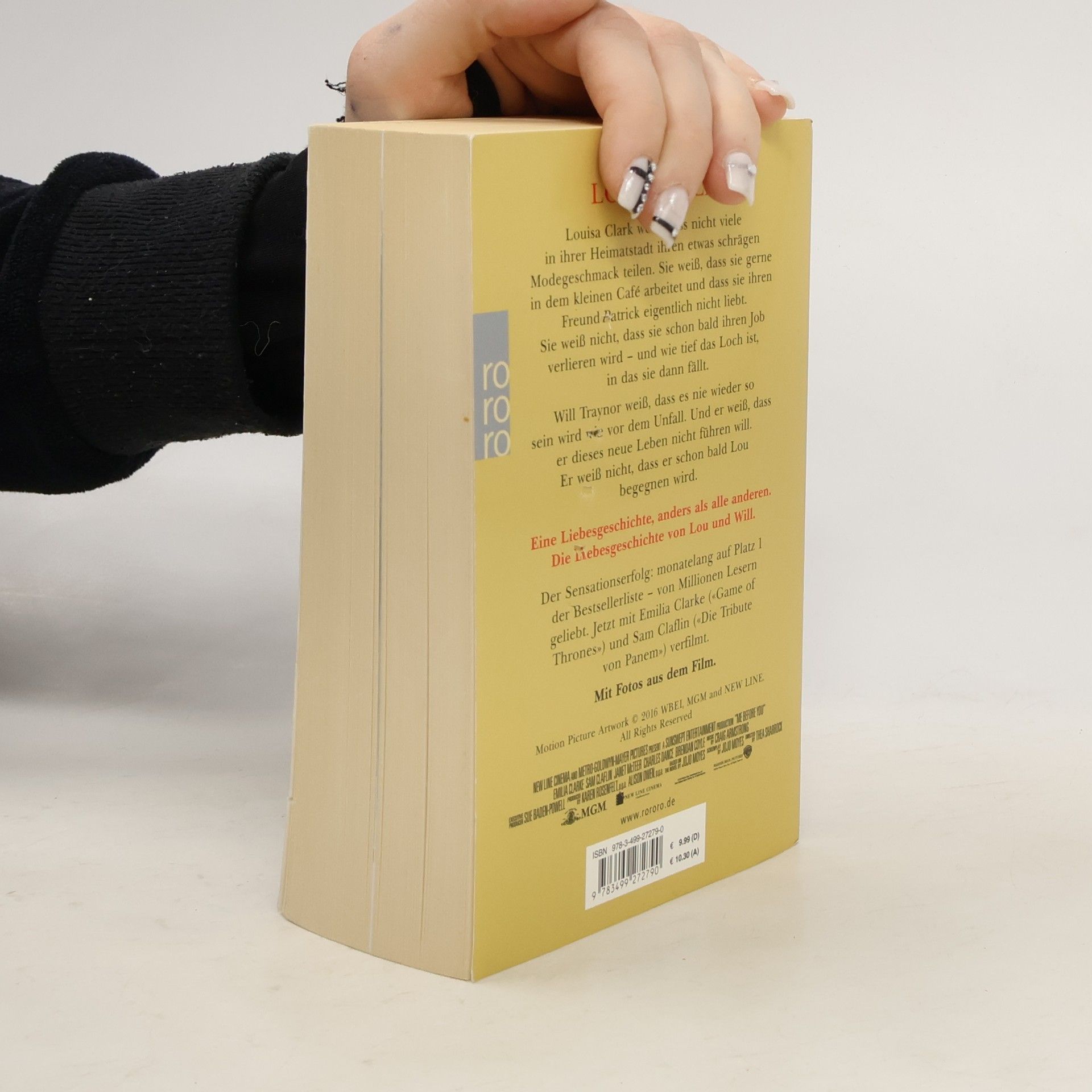 Louisa Clark weiß, dass nicht viele in ihrer Heimatstadt ihren etwas schrägen Modegeschmack teilen. Sie weiß, dass sie gerne in dem kleinen Café arbeitet und dass sie ihren Freund Patrick eigentlich nicht liebt. Sie weiß nicht, dass sie schon bald ihren Job verlieren wird – und wie tief das Loch ist, in das sie dann fällt. Will Traynor weiß, dass es nie wieder so sein wird wie vor dem Unfall. Und er weiß, dass er dieses neue Leben nicht führen will. Er weiß nicht, dass er schon bald Lou begegnen wird. Eine Liebesgeschichte, anders als alle anderen. Die Liebesgeschichte von Lou und Will.