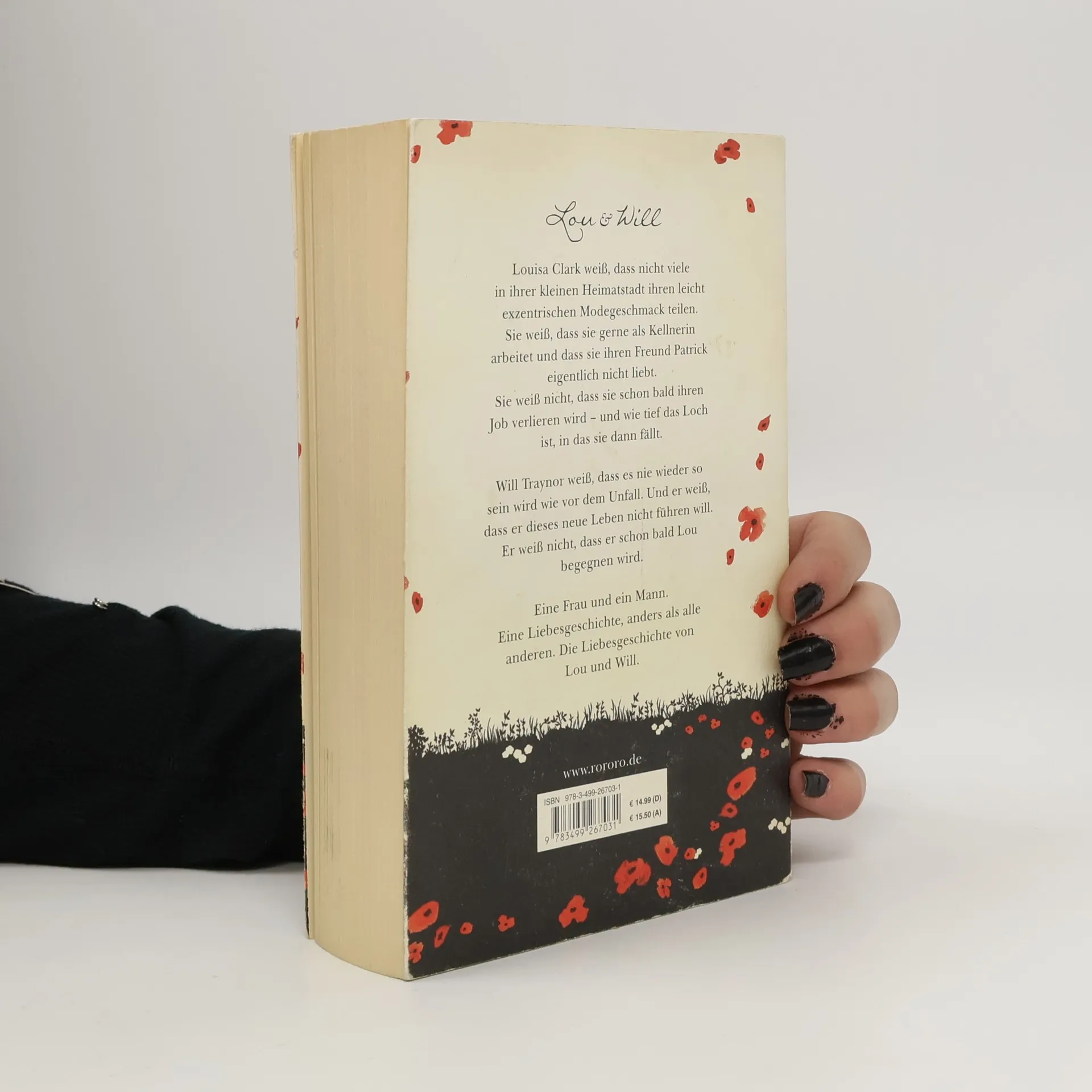 Lou & Will. Louisa Clark weiß, dass nicht viele in ihrer Heimatstadt ihren etwas schrägen Modegeschmack teilen. Sie weiß, dass sie gerne in dem kleinen Café arbeitet und dass sie ihren Freund Patrick eigentlich nicht liebt. Sie weiß nicht, dass sie schon bald ihren Job verlieren wird – und wie tief das Loch ist, in das sie dann fällt. Will Traynor weiß, dass es nie wieder so sein wird wie vor dem Unfall. Und er weiß, dass er dieses neue Leben nicht führen will. Er weiß nicht, dass er schon bald Lou begegnen wird. Eine Frau und ein Mann. Eine Liebesgeschichte, anders als alle anderen. Die Liebesgeschichte von Lou und Will.