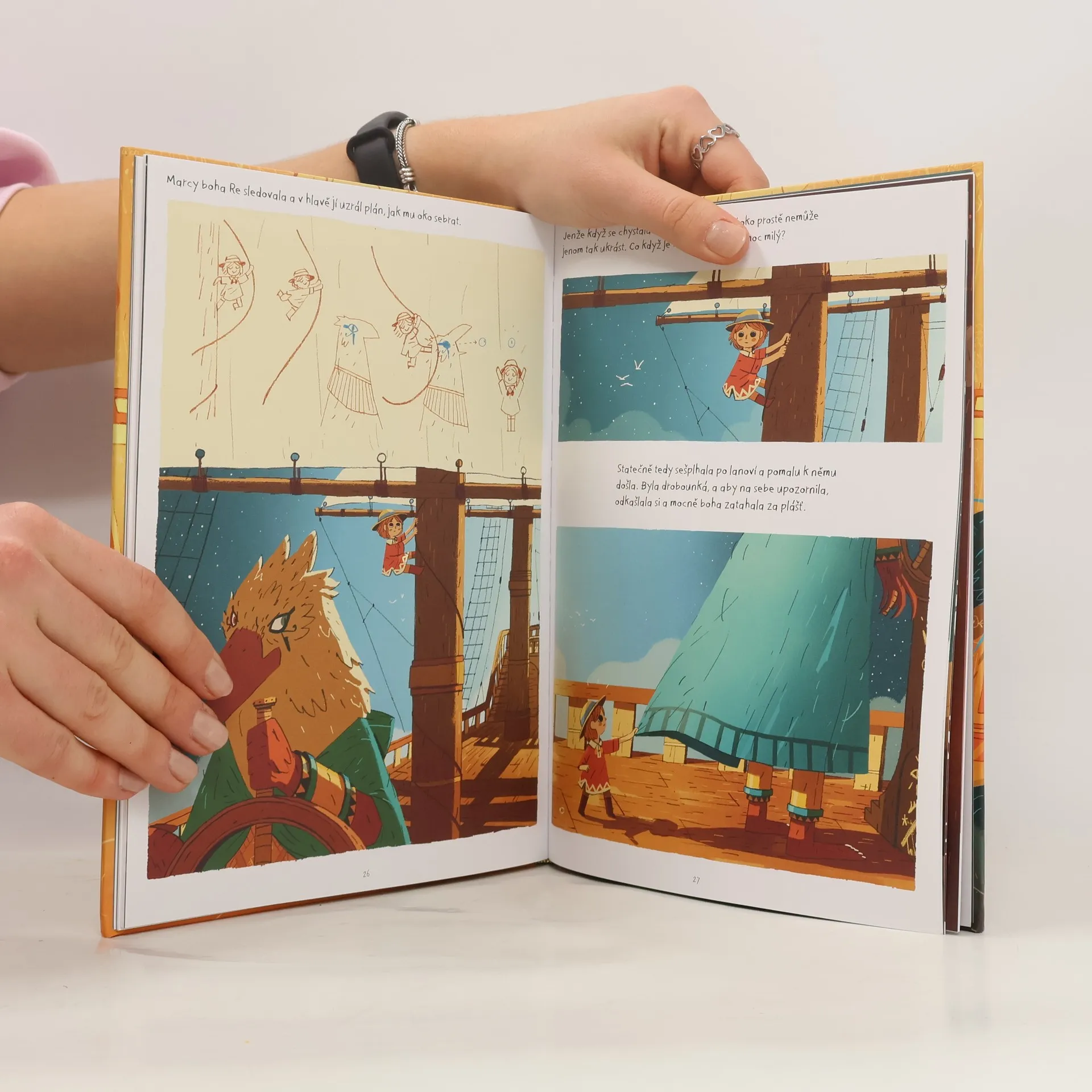 Milá čtenářko, milý čtenáři, když zvedneš v noci hlavu, zjistíš, že obloha je plná zářících zvířat. Ale víš, kdo je na tmavém nebi pastýřem? Malá Marcy je dcerou věhlasného dobrodruha Artura z rodu Brownstonů, známého svou neohroženou povahou. Když ten však zmizí v Egyptě, místě plném kouzel a starodávných bohů, musí Marcy proniknout na sluneční bárku a odletět ke sfinze, která jí dá zapeklitou hádanku. Jenom tehdy, když ji rozluští, shledá se znovu se svým tatínkem. Vydej se na dobrodružnou cestu, setkej se s egyptskými božstvy a pronikni do podsvětí této tajemné země. Budeš mít tu nejlepší průvodkyni - malou holčičku, jež sama poznala, že statečnost není výsadou silných, ale těch nejmenších, kteří dokážou svůj strach překonat.