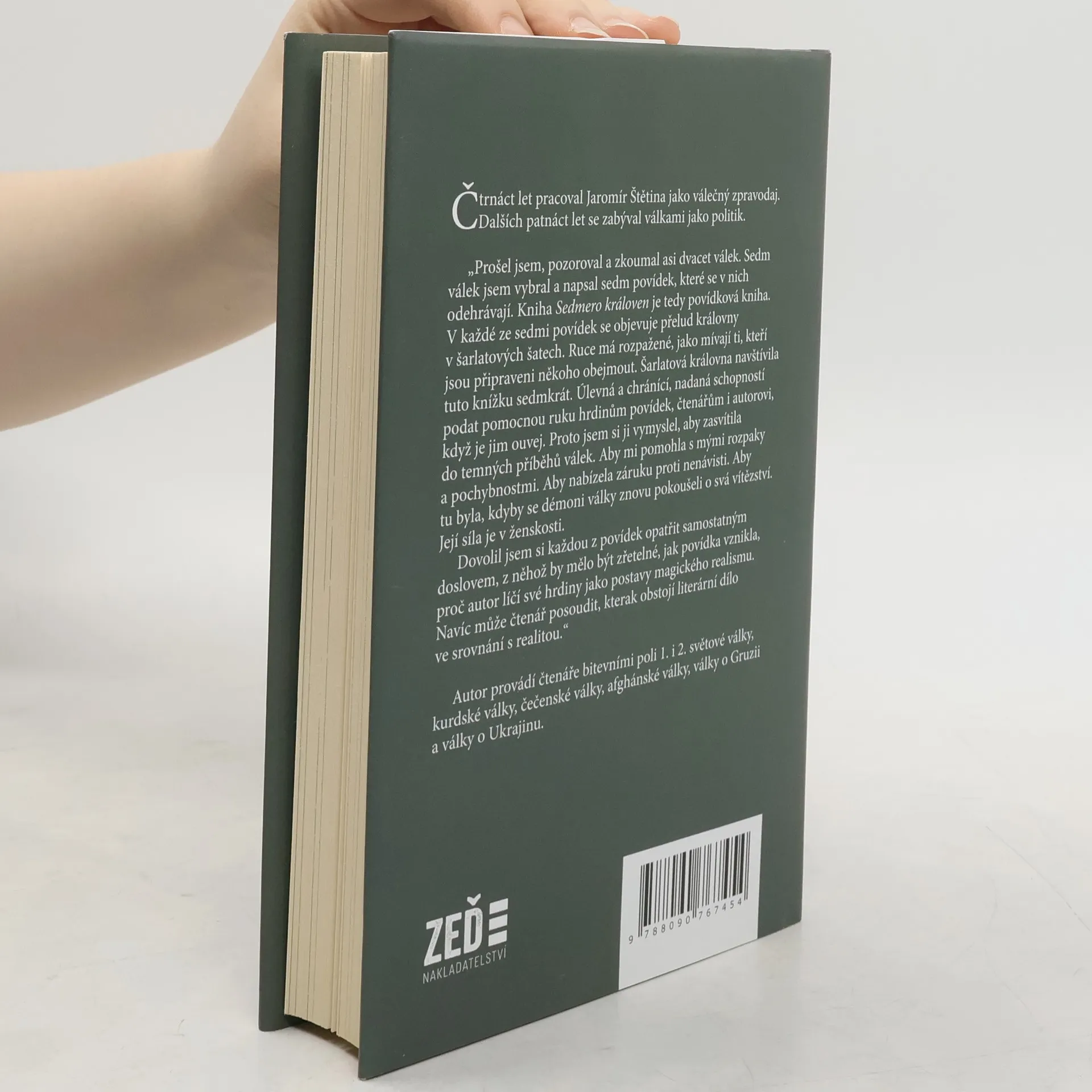 Čtrnáct let pracoval Jaromír Štětina jako válečný zpravodaj. Dalších patnáct let se zabýval válkami jako politik. „Prošel jsem, pozoroval a zkoumal asi dvacet válek. Sedm válek jsem vybral a napsal sedm povídek, které se v nich odehrávají. Kniha Sedmero královen je tedy povídková kniha. V každé ze sedmi povídek se objevuje přelud královny v šarlatových šatech. Ruce má rozpažené, jako mívají ti, kteří jsou připraveni někoho obejmout. Šarlatová královna navštívila tuto knížku sedmkrát. Úlevná a chránící, nadaná schopností podat pomocnou ruku hrdinům povídek, čtenářům i autorovi, když je jim ouvej. Proto jsem si ji vymyslel, aby zasvítila do temných příběhů válek. Aby mi pomohla s mými rozpaky a pochybnostmi. Aby nabízela záruku proti nenávisti. Aby tu byla, kdyby se démoni války znovu pokoušeli o svá vítězství. Její síla je v ženskosti. Dovolil jsem si každou z povídek opatřit samostatným doslovem, z něhož by mělo být zřetelné, jak povídka vznikla, proč autor líčí své hrdiny jako postavy magického realismu. Navíc může čtenář posoudit, kterak obstojí literární dílo ve srovnání s realitou.“ Autor provádí čtenáře bitevními poli 1. i 2. světové války, kurdské války, čečenské války, afghánské války, války o Gruzii a války o Ukrajinu.