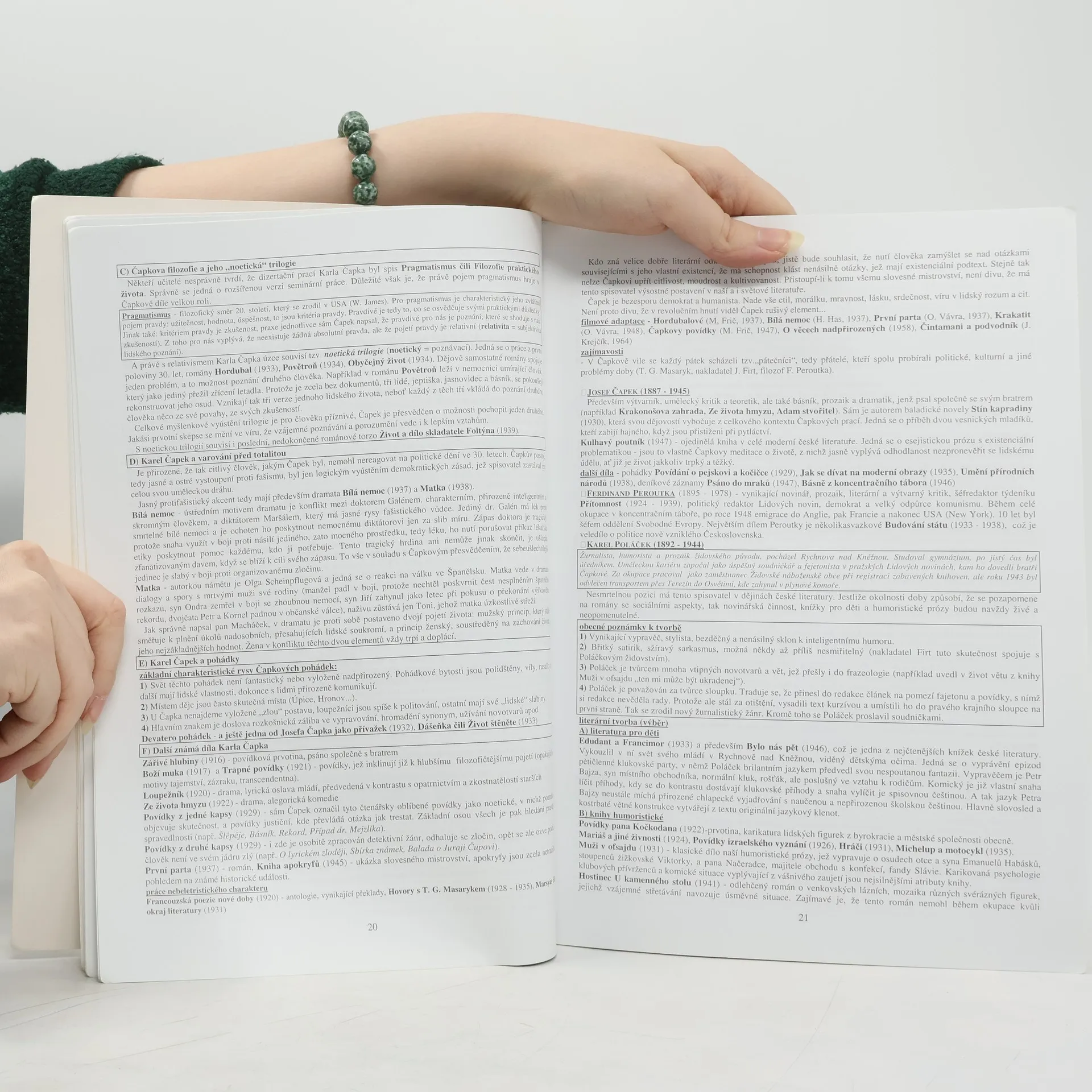 Přehled všech výrazných tendencí v české literatuře 20. století. Podrobnější medailony všech velkých osobností české literatury (autoři nejsou násilně kouskováni dle politických údobí). U důležitých literárních děl stručné obsahy a interpretace. Přehled filmových adaptací většiny literárních děl, politické souvislosti,mnohé zajímavosti. Text je graficky přehledně členěn, nejedná se o pouhý „telefonní“ seznam.
