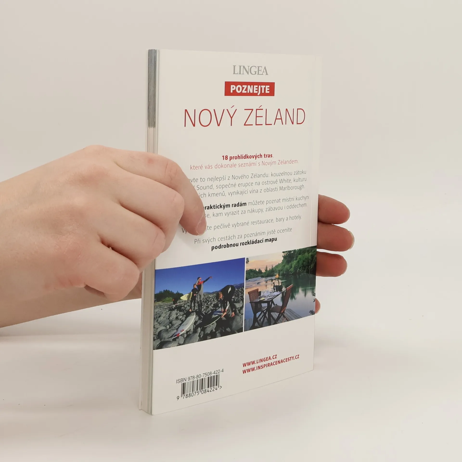 Cestování po Novém Zélandu může být výzvou i pro zkušené cestovatele kvůli velkým vzdálenostem a rozdělení země na dva ostrovy. Trasy se zaměřují na pět hlavních destinací: Auckland, Rotoruu, Wellington, Christchurch a Queenstown, s doplňkovými trasami do turisticky atraktivních míst jako záliv Bay of Islands, pláže na poloostrově Coromandel, jezero Taupo, vinařskou oblast Wairarapa, ledovce na západním pobřeží Jižního ostrova a zátoku Milford Sound. Pokud máte čas, můžete trasy propojit a poznat téměř celou zemi, nebo se mezi hlavními body přepravovat letecky a regiony navštěvovat autem. Nový Zéland je rájem pro milovníky outdoorových aktivit díky rozmanité přírodě a absenci jedovatých zvířat. Průvodce obsahuje seznam oblíbených aktivit, včetně bungee jumpingu, který zde vznikl, a jízdy na tryskovém člunu. Pro ty, kteří preferují klidnější zážitky, jsou k dispozici turistika, rybaření či rafting. Nechybí podrobná rozkládací mapa Nového Zélandu, praktické informace, doporučení na cesty a zajímavosti z historie a současnosti země.