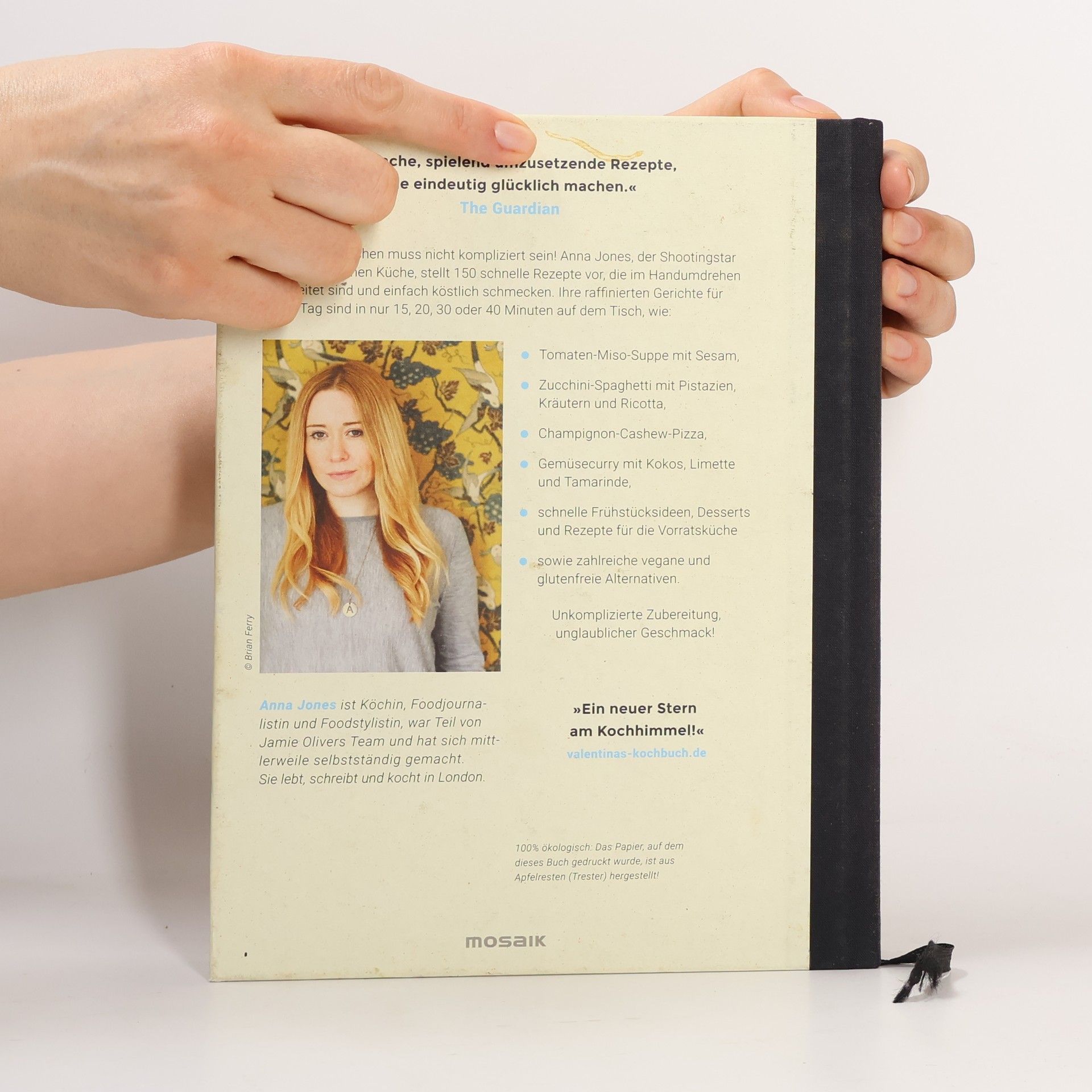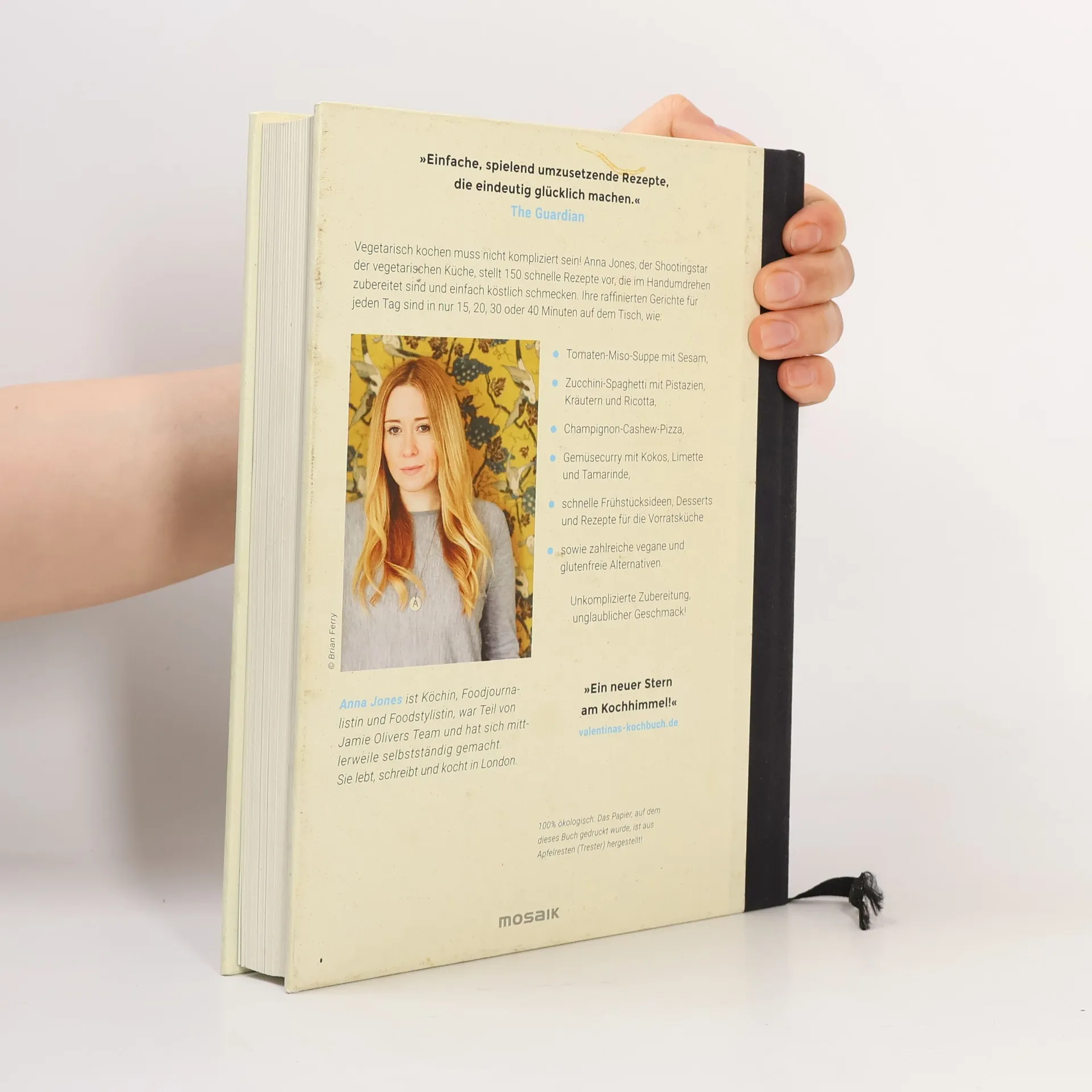 Vegetarisch kochen muss nicht kompliziert sein! Anna Jones, der Shootingstar der vegetarischen Küche, stellt 150 schnelle Rezepte vor, die im Handumdrehen zubereitet sind und einfach köstlich schmecken. Ihre raffinierten Gerichte für jeden Tag sind in nur 15, 20, 30 oder 40 Minuten auf dem Tisch. Dazu gibt es jede Menge schnelle Frühstücksideen, Desserts und Rezepte für die Vorratsküche. Unkomplizierte Zubereitung, unglaublicher Geschmack – so kocht man heute! Ausstattung: 4-farbig, ca. 125 Farbfotos, Pappband veredelt, Lesebändchen