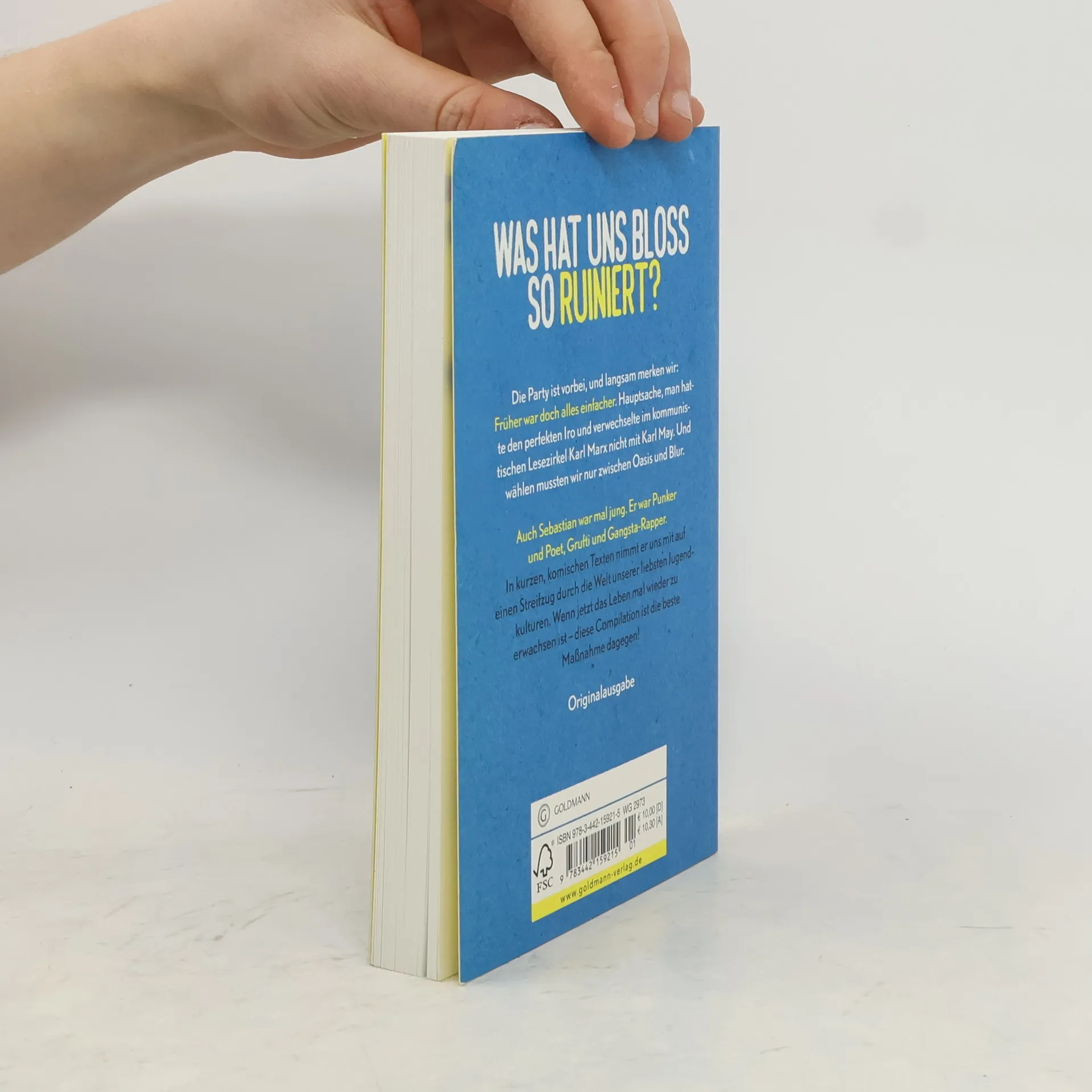 Was hat uns bloß so ruiniert? Die Party ist vorbei, und langsam merken wir: Früher war doch alles einfacher. Hauptsache, man hatte den perfekten Iro und verwechselte im kommunistischen Lesezirkel Karl Marx nicht mit Karl May. Und wählen mussten wir nur zwischen Oasis und Blur. Auch Sebastian war mal jung. Er war Punker und Poet, Grufti und Gangsta-Rapper. In kurzen, komischen Texten nimmt er uns mit auf einen Streifzug durch die Welt unserer liebsten Jugendkulturen. Wenn jetzt das Leben mal wieder zu erwachsen ist – diese Compilation ist die beste Maßnahme dagegen! Ausstattung: farbige Abbildungen