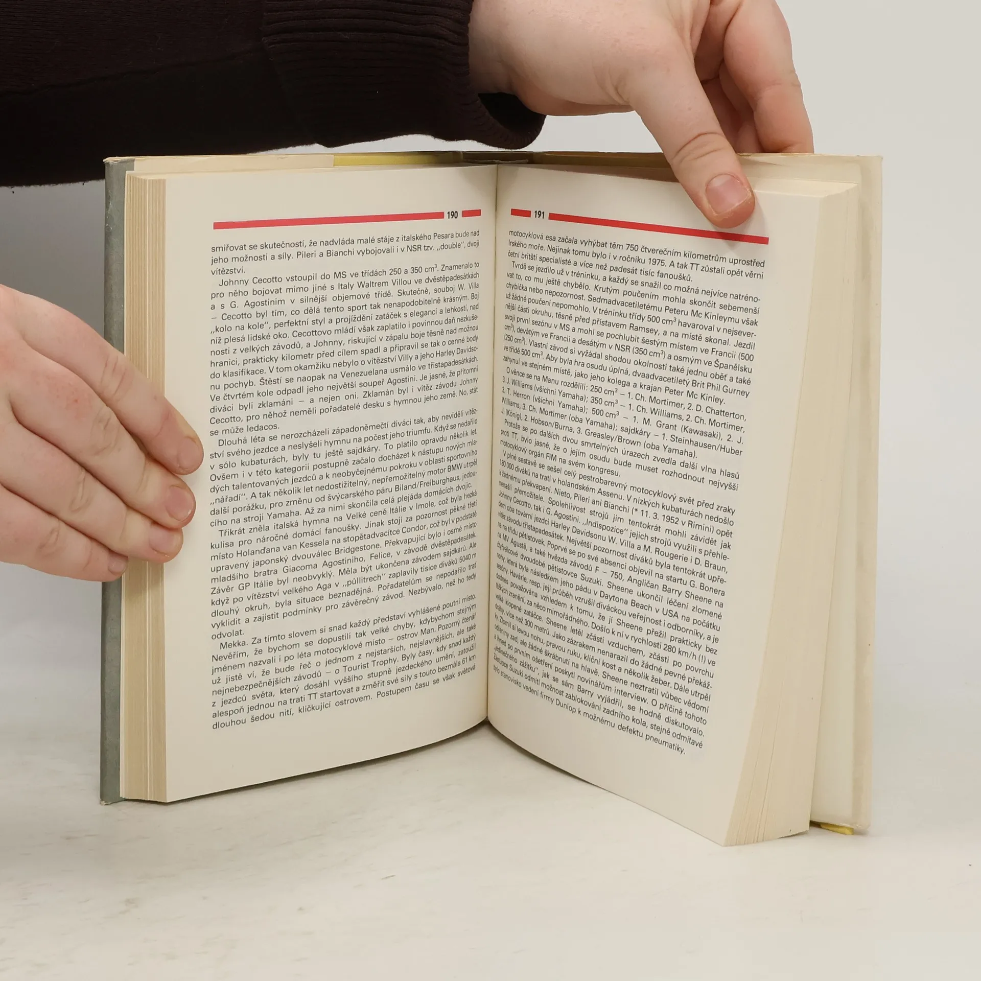 Publikace věnovaná motocyklovému sportu hlavně v Československu, ale i jinde. Tabulky vítězů Velkých cen, motocyklové legendy jako František Šťastný a Giacomo Agostini.