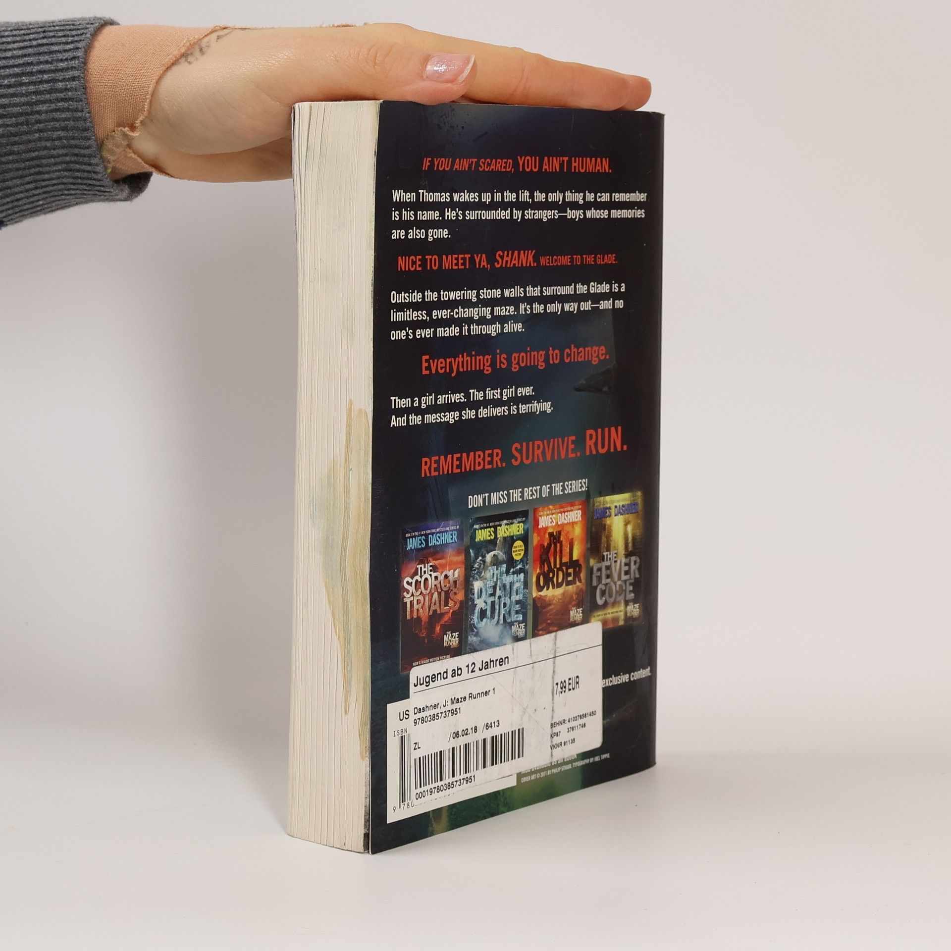 THE #1 NEW YORK TIMES BESTSELLING MAZE RUNNER SERIES • A teenager with no memory must navigate a deadly maze to survive in book one of this post-apocalyptic phenomenon. “[A] mysterious survival saga that passionate fans describe as a fusion of Lord of the Flies [and] The Hunger Games” (Entertainment Weekly) When Thomas wakes up in the lift, the only thing he can remember is his name. He’s surrounded by strangers—boys whose memories are also gone. Outside the towering stone walls that surround them is a limitless, ever-changing maze. It’s the only way out—and no one’s ever made it through alive. Then a girl arrives. The first girl ever. And the message she delivers is terrifying: Remember. Survive. Run. Look for more books in the blockbuster Maze Runner series: THE MAZE RUNNER • THE SCORCH TRIALS • THE DEATH CURE • THE KILL ORDER • THE FEVER CODE