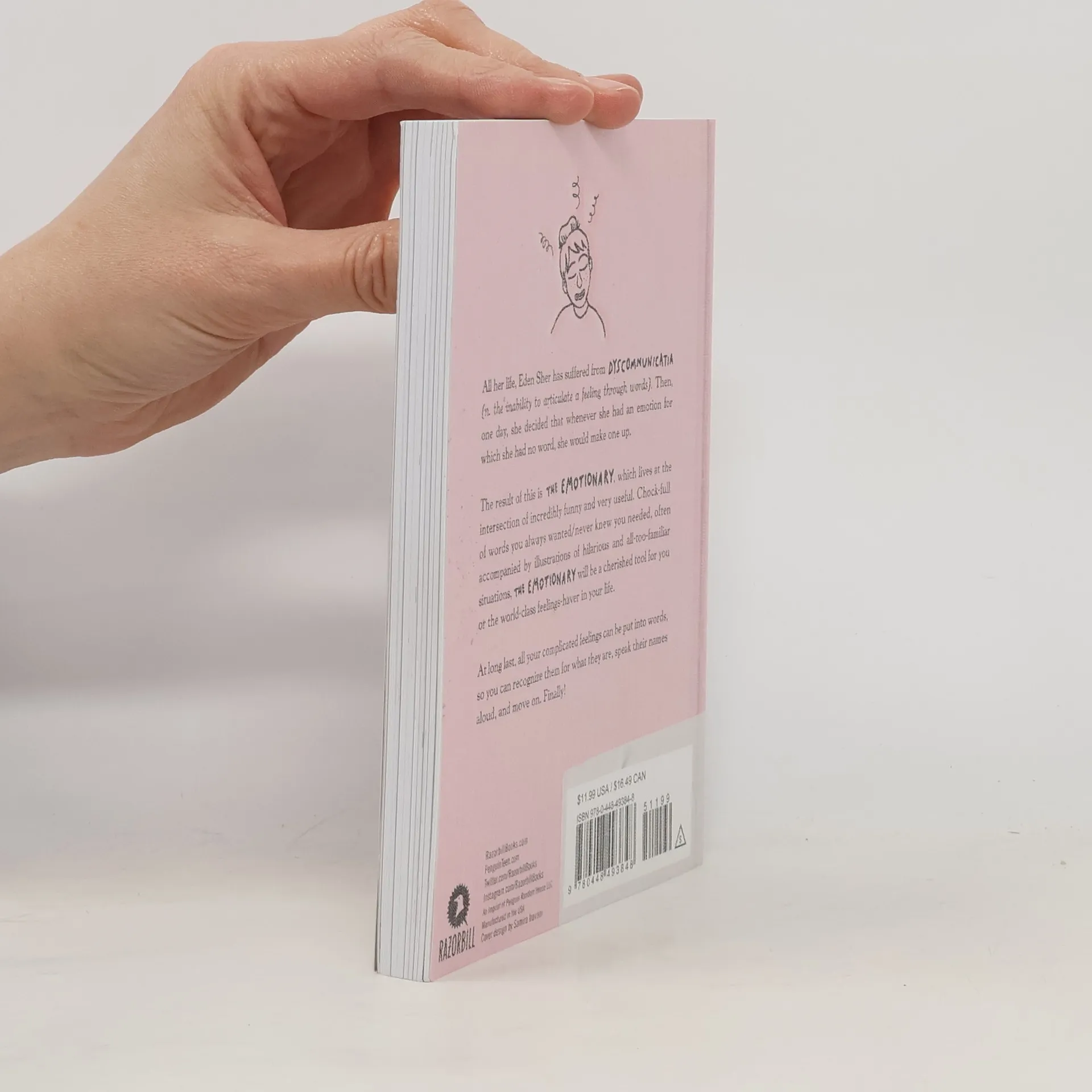 A dictionary of words that don't exist for feelings that do written by The Middle actress Eden Sher and illustrated by acclaimed graphic novelist Julia Wertz. “A must-read for bad, good and just plain complicated days.” —Oprah.com All her life, Eden Sher has suffered from dyscommunicatia (n. the inability to articulate a feeling through words.). Then, one day, she decided that, whenever she had an emotion for which she had no word, she would make one up. The result of this is The Emotionary, which lives at the intersection of incredibly funny and very useful. Chock full of words you always wanted/never knew you needed, often accompanied by illustrations of hilarious and all-too-familiar situations, The Emotionary will be a cherished tool for you or the world-class feelings-haver in your life. At long last, all your complicated feelings can be put into words, so you can recognize them for what they are, speak their names aloud, and move on. Finally!