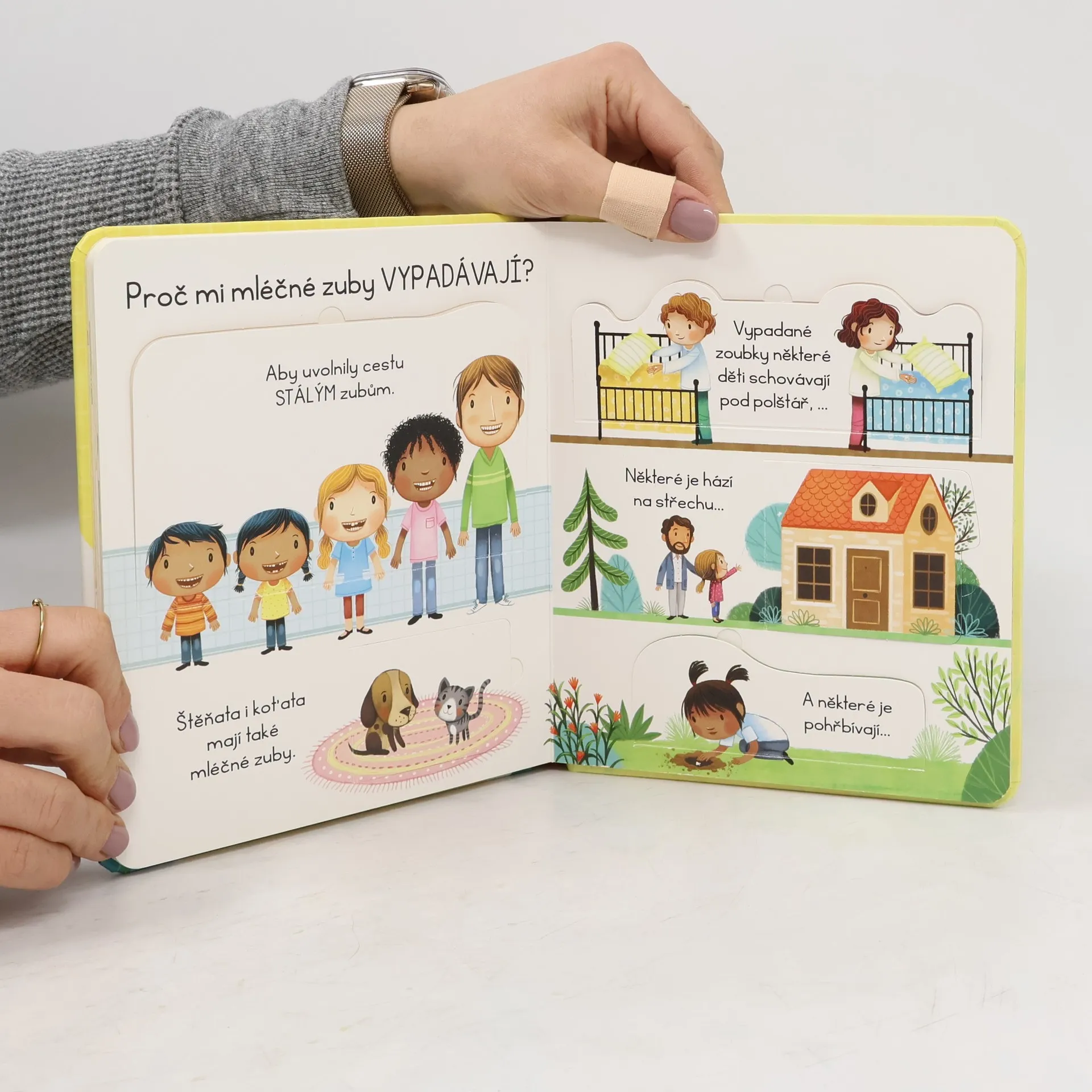 Nechce si vaše dítě čistit zuby? Bojí se zubařů? A co když vytáhne ten nejtěžší kalibr: "Zvířátka si taky nemusí čistit zuby!" Tato ilustrovaná knížka s odklápěcími okénky obsahuje odpovědi na nejčastější otázky dětí o zubech. Vysvětluje, k čemu jsou zuby dobré, proč dětem vypadávají, proč je důležité se o ně správně starat a chodit pravidelně k zubaři. A vysvětluje i to, že se zvířátka také o svůj chrup starají, i když nemají žádný kartáček. Díky tomuto krásně ilustrovanému leporelu už bude ranní a večerní hygiena jedna velká zábava!