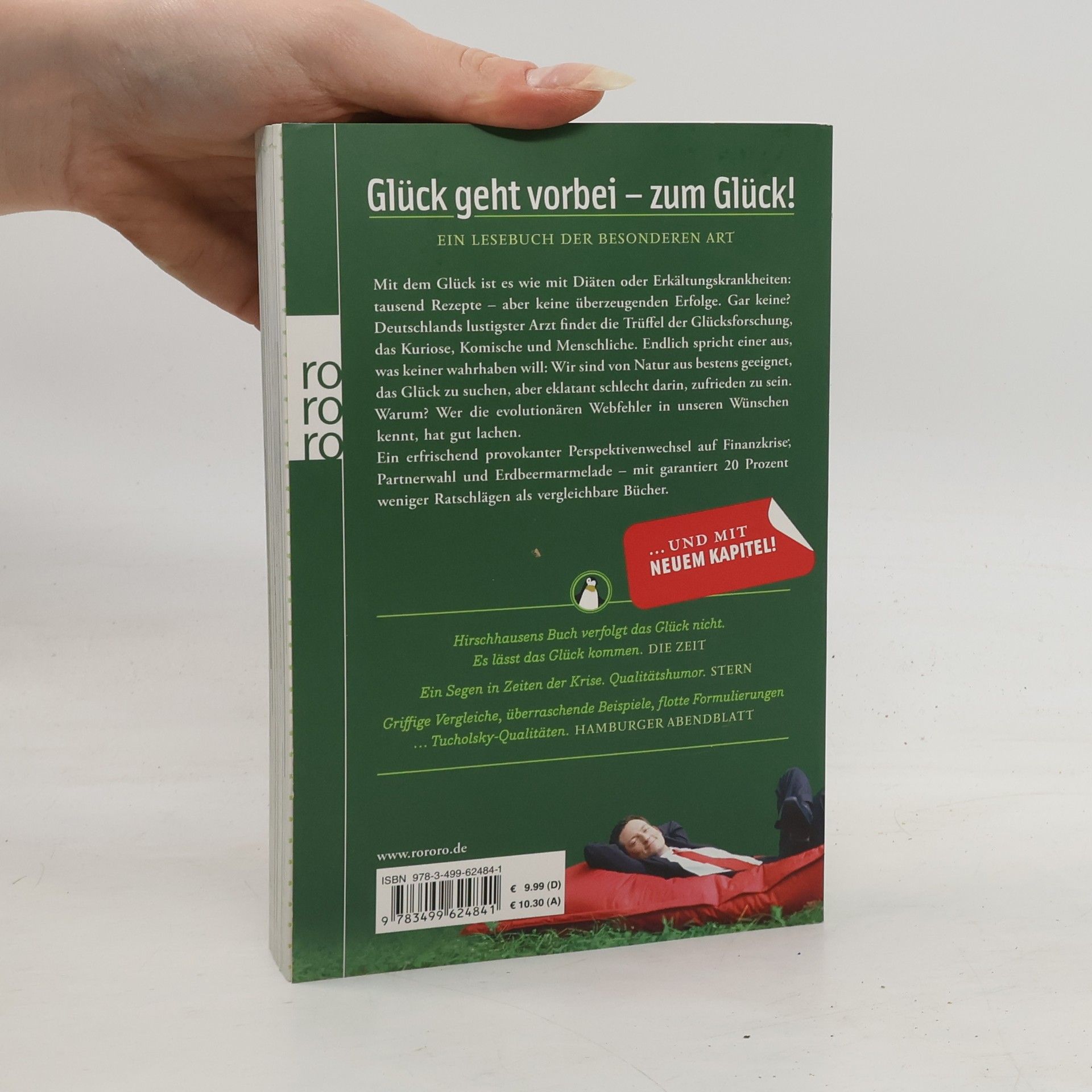 Der Bestseller mit neuem Kapitel!Glück geht vorbei – zum Glück!Ein Lesebuch der besonderen ArtMit dem Glück ist es wie mit Diäten oder Erkältungskrankheiten: tausend Rezepte – aber keine überzeugenden Erfolge. Gar keine? Deutschlands lustigster Arzt findet die Trüffel der Glücksforschung, das Kuriose, Komische und Menschliche. Endlich spricht einer aus, was keiner wahrhaben will: Wir sind von Natur aus bestens geeignet, das Glück zu suchen, aber eklatant schlecht darin, zufrieden zu sein. Warum? Wer die evolutionären Webfehler in unseren Wünschen kennt, hat gut lachen. Ein erfrischend provokanter Perspektivenwechsel auf Finanzkrise, Partnerwahl und Erdbeermarmelade – mit garantiert 20 Prozent weniger Ratschlägen als vergleichbare Bücher.«Hirschhausens Buch verfolgt das Glück nicht. Es lässt das Glück kommen.» Die Zeit «Ein Segen in Zeiten der Krise. Qualitätshumor.» STERN «Griffige Vergleiche, überraschende Beispiele, flotte Formulierungen …Tucholsky-Qualitäten.»Hamburger Abendblatt