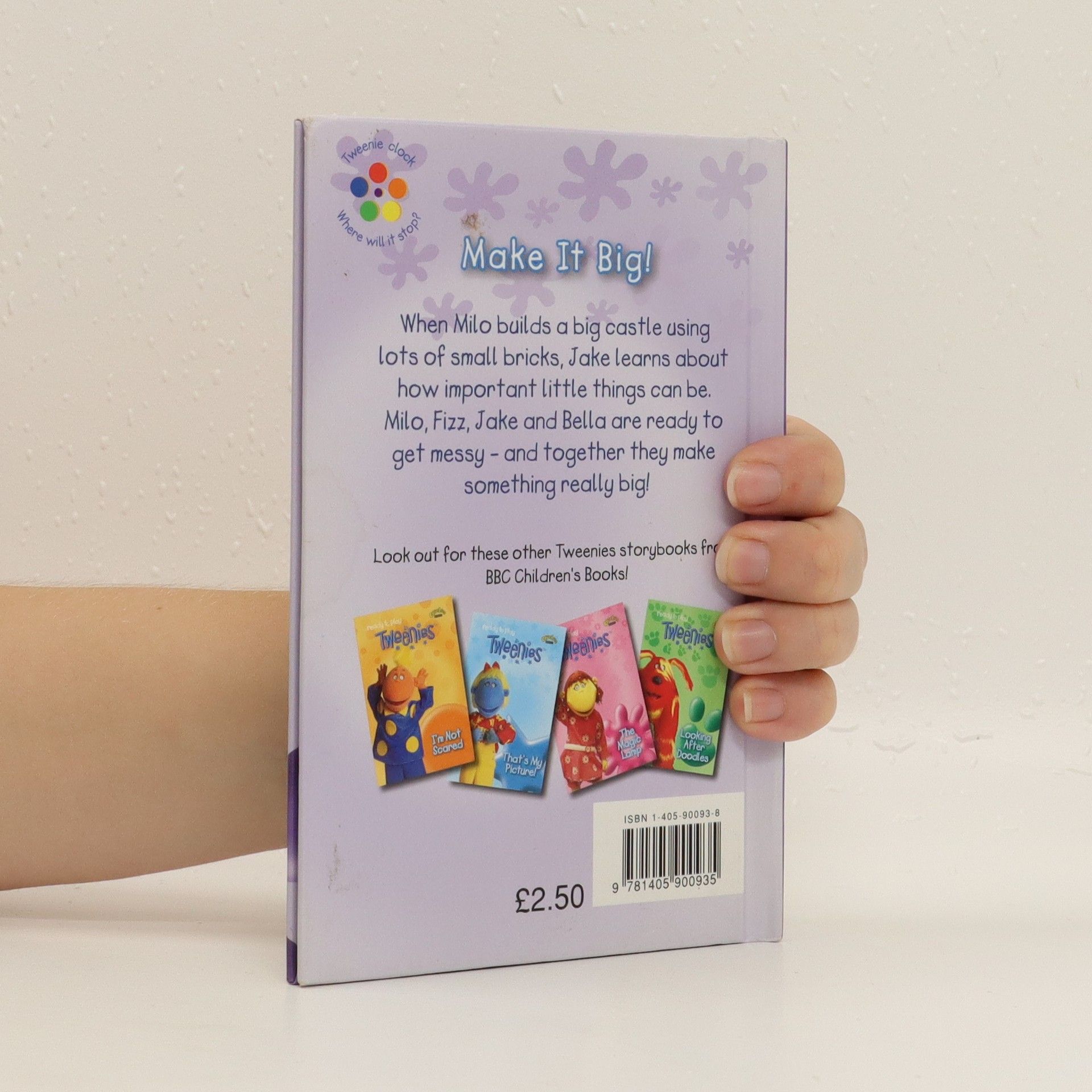 Jake doesn't understand big and small, so the Tweenies try to help him. Max and Judy explain that lots of small things added together can sometimes make one big thing. Lots of blades of grass make a field, lots of grains of sand make a beach, lots of bricks make a house. Then Max and Judy suggest a game, where the Tweenies see how important small things are.