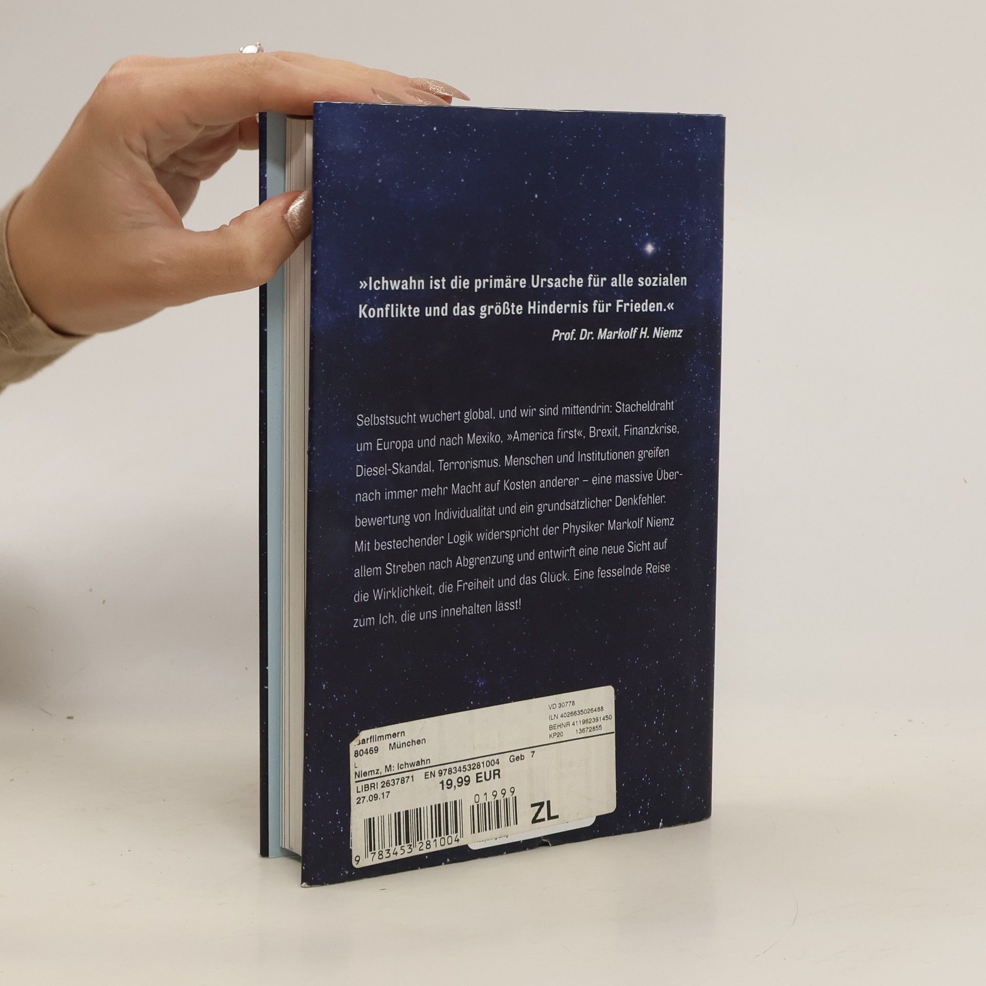 Ichwahn ist das größte Hindernis für Frieden Selbstsucht wuchert global, und wir sind mittendrin: Stacheldraht um Europa und nach Mexiko, »America first«, Brexit, Finanzkrise, Diesel-Skandal, Terrorismus. Menschen und Institutionen greifen nach immer mehr Macht auf Kosten anderer – eine massive Überbewertung von Individualität und ein grundsätzlicher Denkfehler. Mit bestechender Logik widerspricht der Physiker Markolf Niemz allem Streben nach Abgrenzung und entwirft eine neue Sicht auf die Wirklichkeit, die Freiheit und das Glück. Eine fesselnde Reise zum Ich, die uns innehalten lässt! Ausstattung: durchgehend 4c