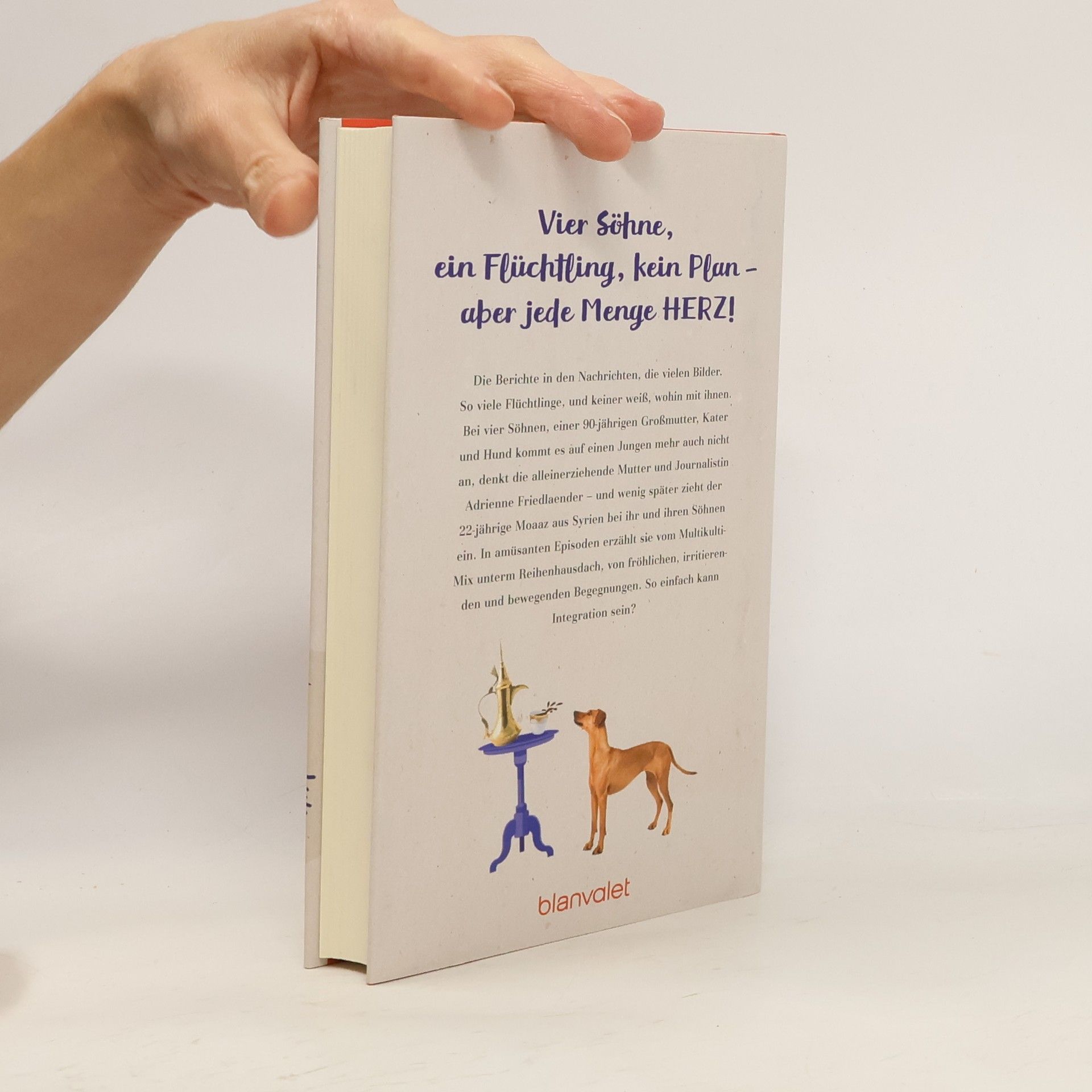 Vier Söhne, ein Flüchtling, kein Plan – aber jede Menge Herz! Die Berichte in den Nachrichten, die vielen Bilder. So viele Flüchtlinge, und keiner weiß, wohin mit ihnen. Bei vier Söhnen, einer 90-jährigen Großmutter, Kater und Hund kommt es auf einen Jungen mehr auch nicht an, denkt die alleinerziehende Mutter und Journalistin Adrienne Friedlaender – und wenig später zieht der 22-jährige Moaaz aus Syrien bei ihr und ihren Söhnen ein. In amüsanten Episoden erzählt sie vom Multikulti-Mix unterm Reihenhausdach, von fröhlichen, irritierenden und bewegenden Begegnungen. So einfach kann Integration sein?
