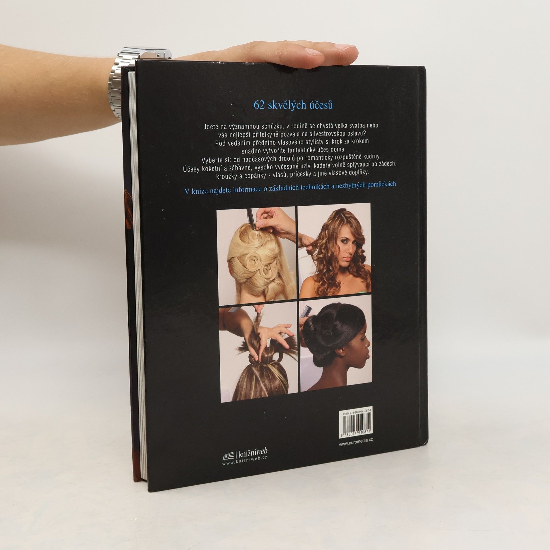 Potřebujete učesat a nemáte čas na kadeřníka? Pod vedením předního vlasového stylisty si snadno vytvoříte krok za krokem fantastický účes doma. Vyberte si z 62 účesů pro různé typy vlasů a různé příležitosti: nadčasové drdoly, romanticky rozpuštěné kudrny, vysoko vyčesané uzly, kadeře volně splývající po zádech, kroužky a copánky z vlasů, příčesky a jiné vlasové doplňky. V knize najdete informace o základních technikách a nezbytných pomůckách.