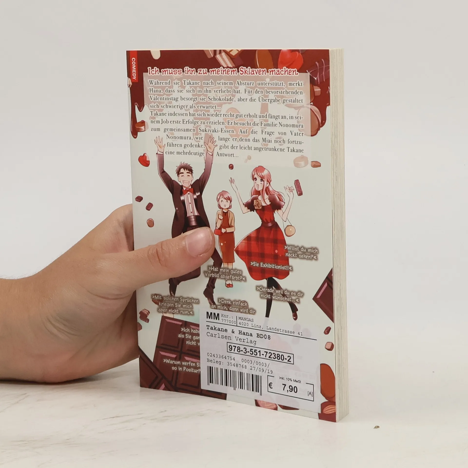 TAKANE & HANA ist ein zum Schreien komischer und sarkastischer Romance-Manga, der sich um die Beziehung einer normalen Schülerin mit einem reichen und zehn Jahre älteren Geschäftsmann dreht. Während sie Takane nach seinem Absturz unterstützt, merkt Hana, dass sie sich in ihn verliebt hat. Für den bevorstehenden Valentinstag besorgt sie Schokolade, aber die Übergabe gestaltet sich schwieriger als erwartet… Takane indessen hat sich wieder recht gut erholt und fängt an, in seinem Job erste Erfolge zu erzielen. Er besucht die Familie Nonomura zum gemeinsamen Sukiyaki-Essen. Auf die Frage von Vater Nonomura, wie lange er denn das Miai noch fortzuführen gedenke, gibt der leicht angetrunkene Takane eine mehrdeutige Antwort… Für Fans von HIYOKOI und MAID-SAMA!