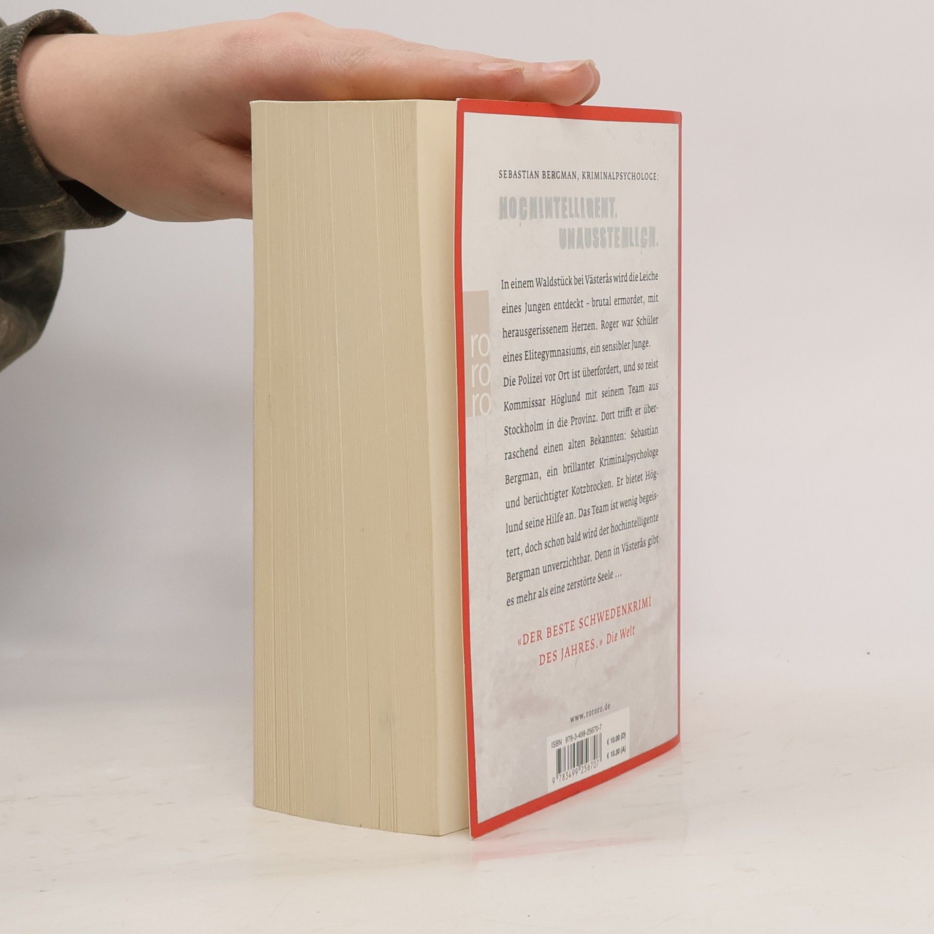 Sebastian Bergman, Kriminalpsychologe: Hochintelligent. Unausstehlich. In einem Waldstück bei Västerås wird die Leiche eines Jungen entdeckt – brutal ermordet, mit herausgerissenem Herzen. Roger war Schüler eines Elitegymnasiums, ein sensibler Junge. Die Polizei vor Ort ist überfordert, und so reist Kommissar Höglund mit seinem Team aus Stockholm in die Provinz. Dort trifft er überraschend einen alten Bekannten: Sebastian Bergman, ein brillanter Kriminalpsychologe und berüchtigter Kotzbrocken. Er bietet Höglund seine Hilfe an. Das Team ist wenig begeistert, doch schon bald wird der hochintelligente Bergman unverzichtbar. Denn in Västerås gibt es mehr als eine zerstörte Seele ... Sebastian Bergmans erster Fall