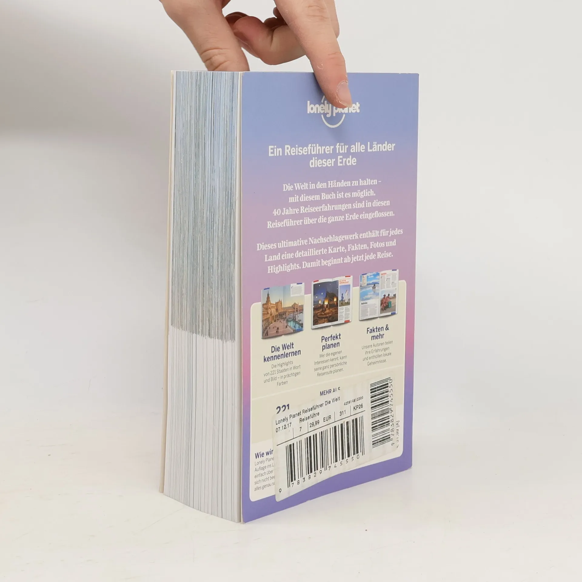 Mit dem Lonely Planet „Die Welt“ auf eigene Faust durch die Kontinente. Etliche Monate Recherche stecken im Kultreiseführer für Individualreisende. Auf knapp 1000 Seiten geben die Autoren zu jedem Land die wichtigsten Infos: Reisezeit, Tipps für Essen & Trinken, die Fortbewegung vor Ort und die wichtigsten Highlights. Auf 7 Kontinenten und in 221 Ländern offenbart die Welt ihre Schönheit und Vielfalt. Worauf warten??