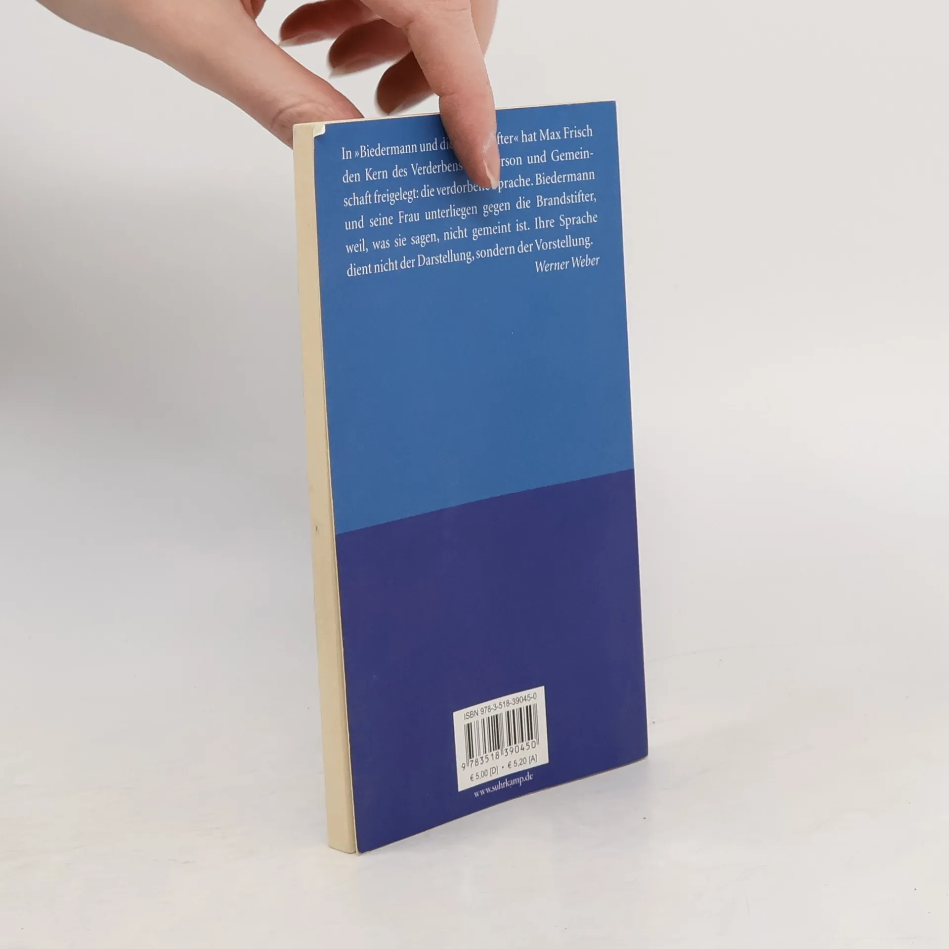 Das Stück ist die Geschichte des Bürgers Gottlieb Biedermann, der die Brandstifter in sein Haus einlädt, um von ihnen verschont zu werden. Es entlarvt präzise eines Geisteshaltung, die der Technik des Totalitären zum Erfolg verhilft. Biedermann und die Brandstifter - eine politische Parabel, die ihre kritische Kraft nicht aus der Entlarvung der Lüge bezieht, sondern aus der Inszenierung der biedermännischen Wehrlosigkeit gegenüber Verbrechern, die von Anfang an sagen, was sie wirklich wollen.Das »Lehrstück ohne Lehre« wurde am 29. März 1958 am Schauspielhaus Zürich uraufgeführt. Die deutsche Erstaufführung mit der Uraufführung des Nachspiels war am 28. September 1958 an den Städtischen Bühnen Frankfurt am Main. Biedermann und die Brandstifter gehört seit Jahren nicht nur zum Theaterrepertoire, sondern auch zum Lekturekanon im Deutschunterricht.
