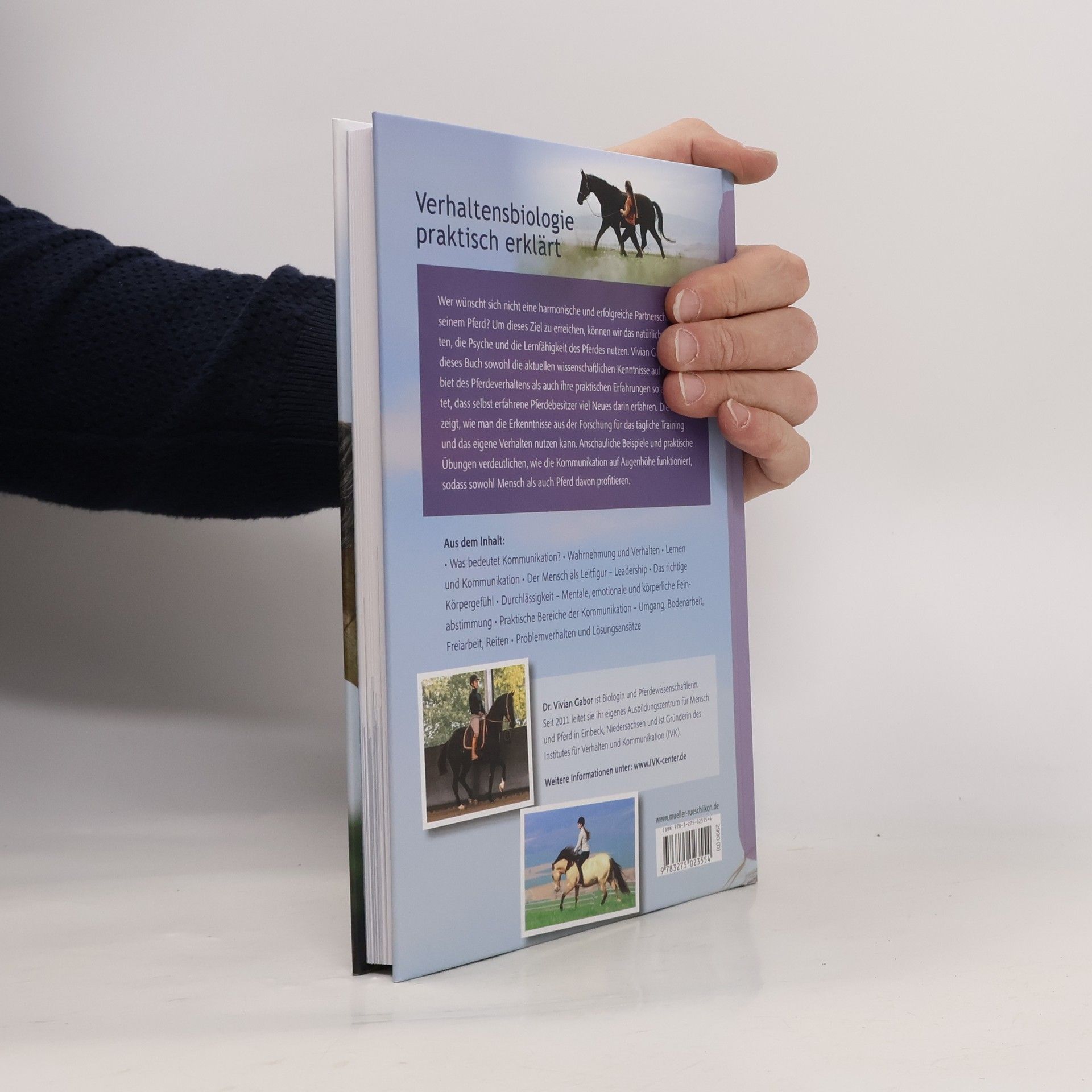 Wer wünscht sich nicht eine harmonische und erfolgreiche Partnerschaft mit seinem Pferd? Dr. Vivian Gabor ist Biologin und Pferdewissenschaftlerin. In diesem Buch trägt sie sowohl die aktuellen wissenschaftlichen Kenntnisse auf dem Gebiet des Pferdeverhaltens als auch ihre praktischen Erfahrungen aus der Arbeit mit Mensch und Pferd zusammen und zeigt, wie man die Erkenntnisse aus der Forschung für das tägliche Training und das eigene Verhalten nutzen kann. Anschauliche Beispiele, zahlreiche Videoclips und praktische Übungen verdeutlichen, wie die Kommunikation auf Augenhöhe funktionieren kann und sowohl Mensch als auch Pferd davon profitieren.
