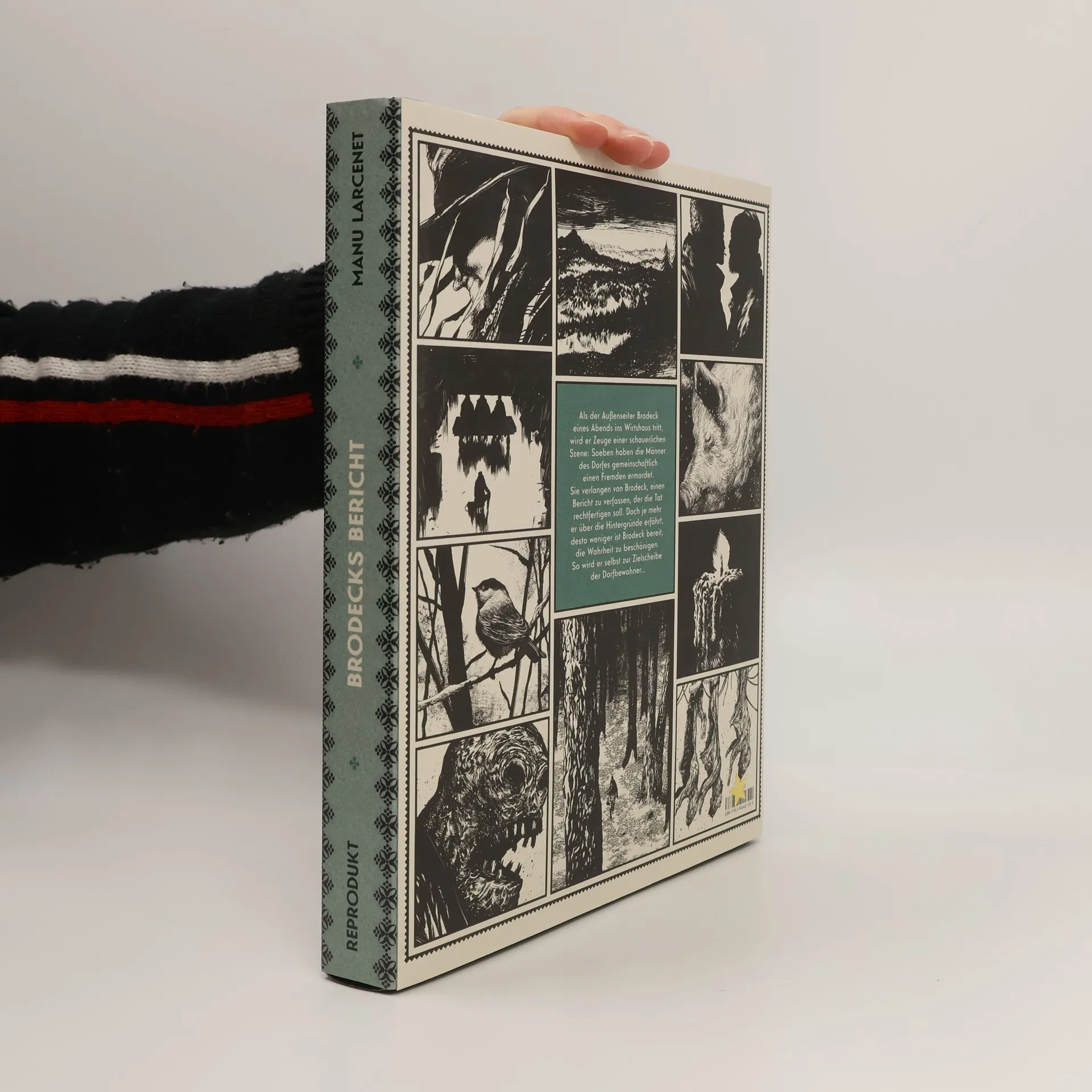 Ein kleines Dorf im deutsch-französischen Grenzgebiet kurz nach Ende des Zweiten Weltkriegs. Als der Außenseiter Brodeck eines Abends das Wirtshaus betritt, wird er Zeuge einer schauerlichen Szene: Soeben hat die Dorfgemeinschaft kollektiv einen Fremden ermordet. Die Bewohner verlangen von Brodeck, einen Bericht zu verfassen, der die Tat rechtfertigen soll. Doch je mehr er über die Hintergründe erfährt, desto weniger ist er bereit, die Wahrheit zu beschönigen. So wird er selbst zur Zielscheibe der Dorfbewohner… Mit Philippe Claudels Bestseller „Bodecks Bericht“ hat sich Manu Larcenet erstmals an eine Adaption gemacht und der tragisch-düsteren Erzählung stimmungsvoll Leben eingehaucht. In umwerfenden Bildern zeichnet er diese Parabel über menschliche Abgründe und setzt sie vor eine Kulisse der rauen Schroffheit der Natur.