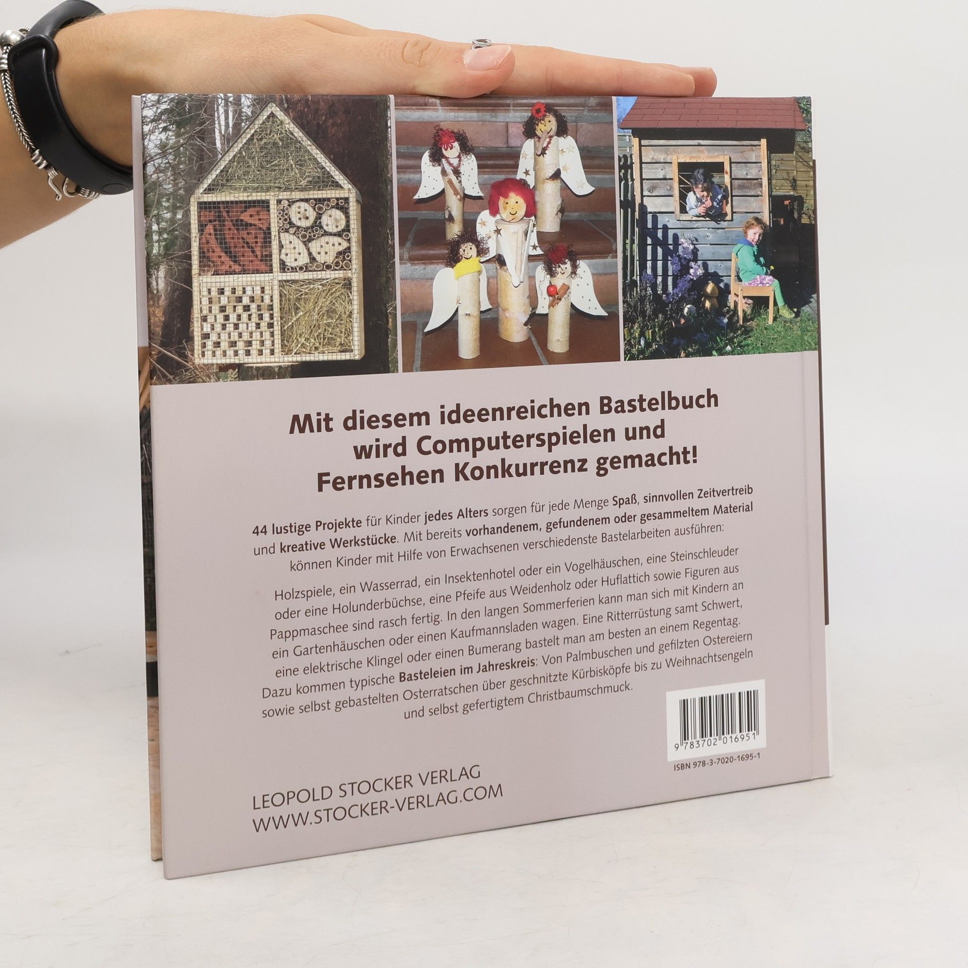 Kinder lieben basteln! • Für alle, die gerne mit Kindern basteln • Sinnvoller und kreativer Zeitvertreib • Projekte für jedes Alter Ohne großen Aufwand und mit bereits vorhandenem, gefundenem oder gesammeltem Material können Kinder mit Hilfe von Erwachsenen verschiedenste Bastelarbeiten ausführen: Unterschiedliche Holzspiele, ein Wasserrad, ein Insektenhotel und ein Vogelhäuschen, eine Steinschleuder und sogar ein Gartenhaus werden gefertigt, eine einfache Pfeife wird geschnitzt, Blumen werden gepresst und Figuren aus Pappmaché gestaltet. Dazu treten typische Basteleien im Jahreskreis: Von gefilzten Ostereiern über geschnitzte Kürbisköpfe bis hin zum Adventkranz und selbst gefertigten Christbaumschmuck.