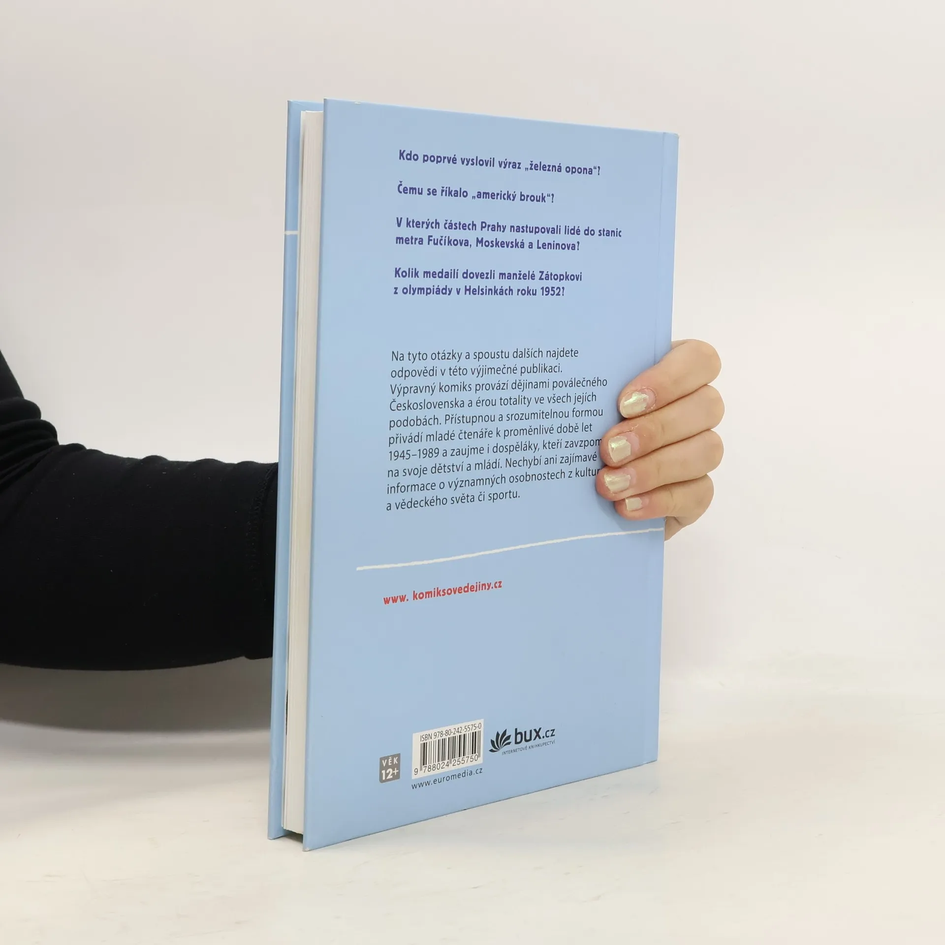 Víte, kdo poprvé vyslovil výraz železná opona? Patřilo Československo mezi první tři země, kde se začaly stavět domy z panelů? V kterých částech Prahy nastupovali lidé do stanic metra Fučíkova, Moskevská, Leninova? A podařilo se někomu překonat rekord Emila Zátopka z olympijských her v Helsinkách v roce 1952, na kterých vyhrál hned 3 zlaté medaile? Na tyto otázky a spoustu dalších najdete odpovědi v této výjimečné obrázkové publikaci. Bohatě ilustrovaný komiks provází dějinami poválečného Československa a érou totality ve všech jejích podobách. Přístupnou a srozumitelnou formou přivádí mladé čtenáře ke komplikované a proměnlivé době let 1945–1989 v Československu, která v mnohém předurčila i současný vývoj demokratické společnosti. Dospěláci zase zavzpomínají na svoje dětství a mládí.
