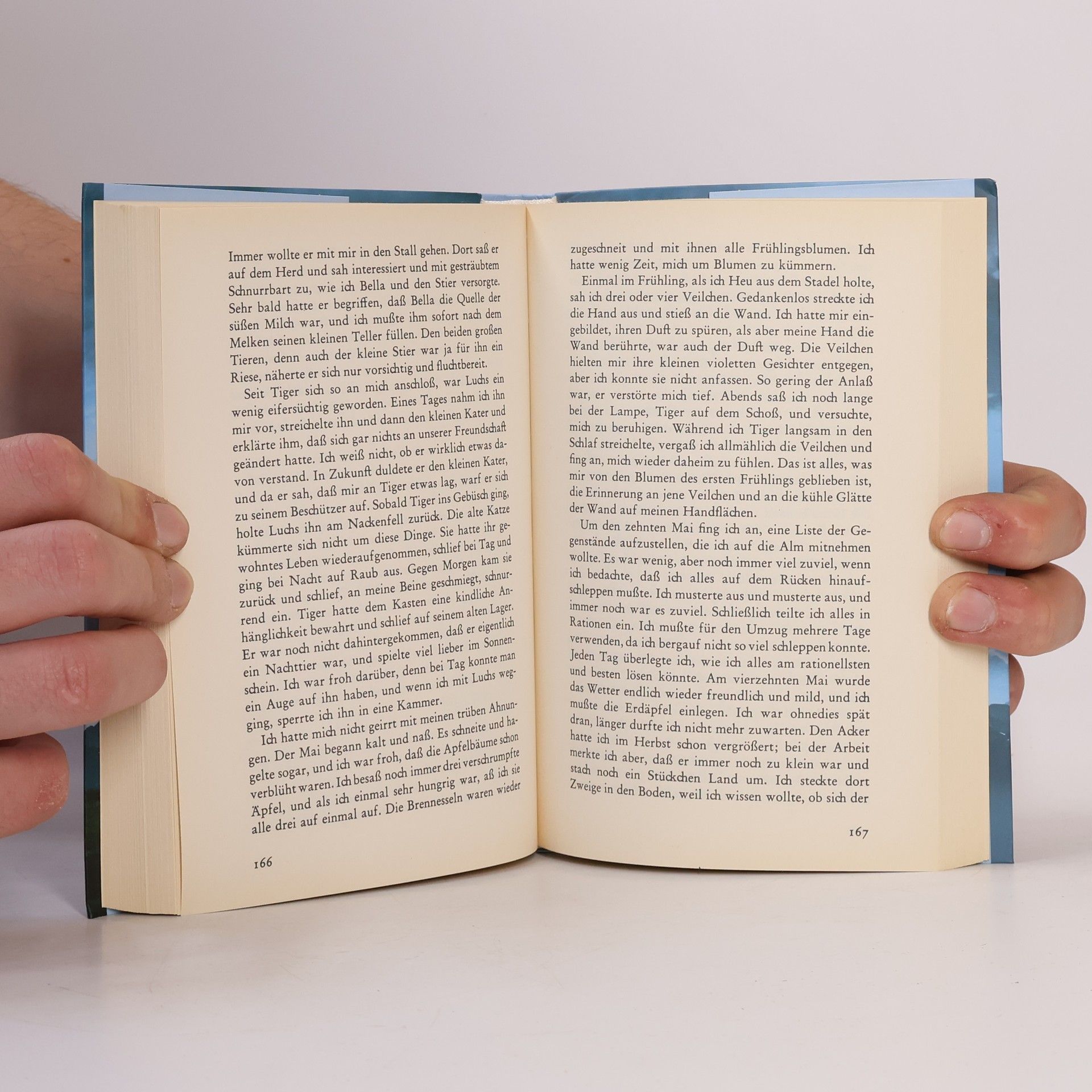 'Verdutzt streckte ich die Hand aus und berührte etwas Glattes und Kühles: einen glatten, kühlen Widerstand an einer Stelle, an der doch gar nichts sein konnte als Luft. Zögernd versuchte ich es noch einmal, und wieder ruhte meine Hand wie auf der Scheibe eines Fensters. Dann hörte ich lautes Pochen und sah um mich, ehe ich begriff, daß es mein eigener Herzschlag war, der mir in den Ohren dröhnte. Mein Herz hatte sich schon gefürchtet, ehe ich es wußte.'