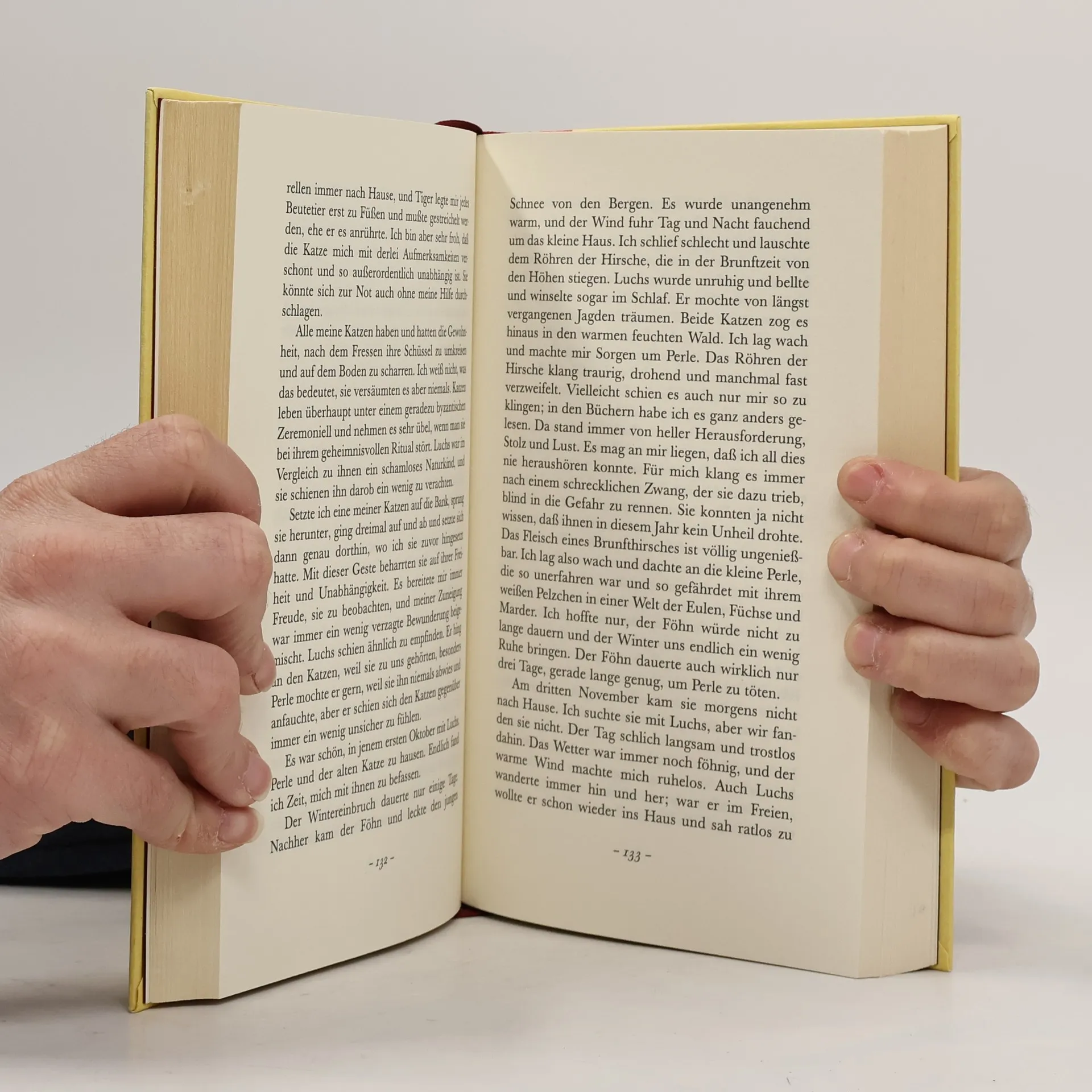 'Verdutzt streckte ich die Hand aus und berührte etwas Glattes und Kühles: einen glatten, kühlen Widerstand an einer Stelle, an der doch gar nichts sein konnte als Luft. Zögernd versuchte ich es noch einmal, und wieder ruhte meine Hand wie auf der Scheibe eines Fensters. Dann hörte ich lautes Pochen und sah um mich, ehe ich begriff, daß es mein eigener Herzschlag war, der mir in den Ohren dröhnte. Mein Herz hatte sich schon gefürchtet, ehe ich es wußte.'