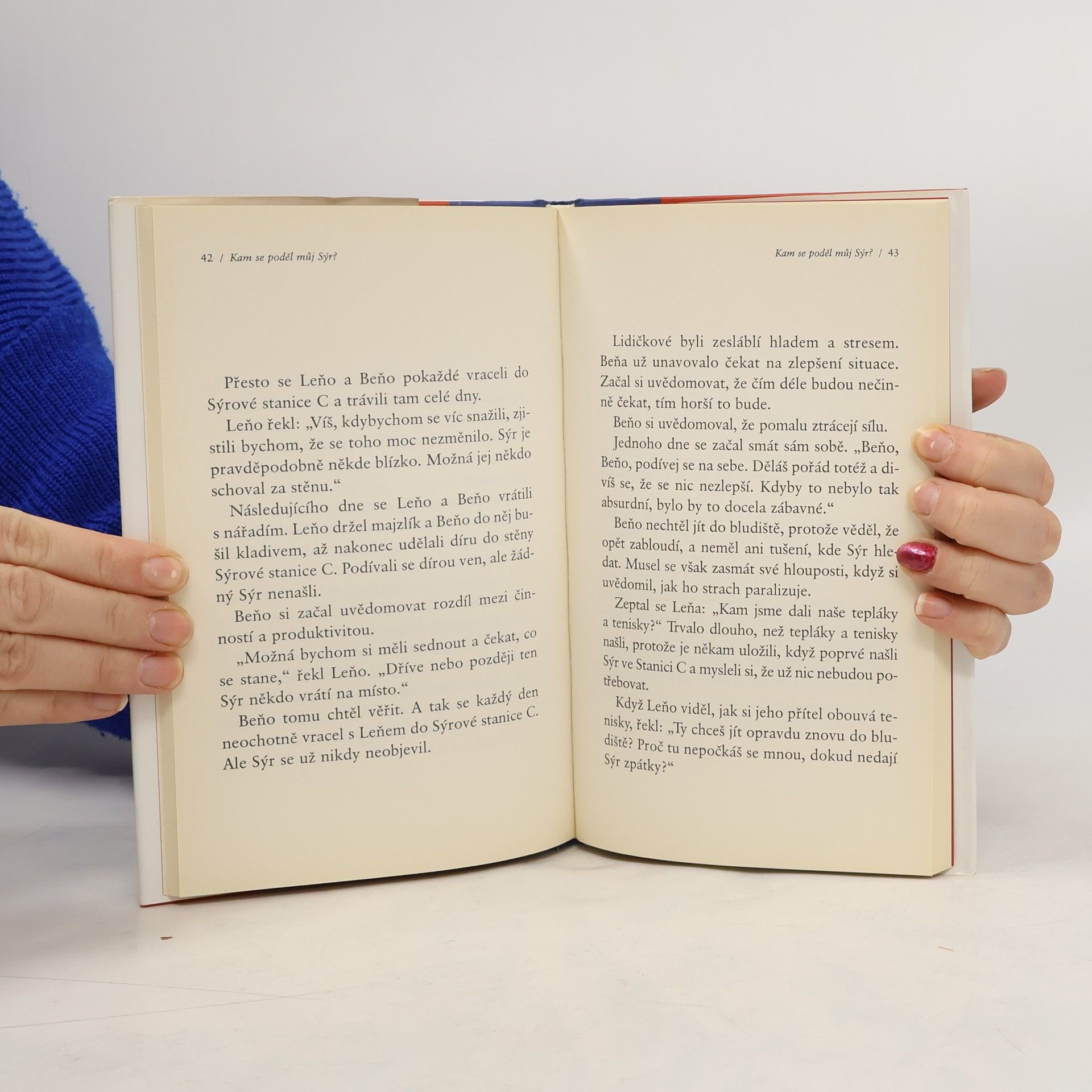 Jedná se o podobenství, které odhaluje hluboké pravdy o změně. Je to zábavný a poučný příběh o čtyřech zajímavých postavičkách, které žijí v „Bludišti“, kde hledají „Sýr“. Sýr je metaforou toho, co v životě chceme, ať už je to zaměstnání, partnerský vztah, peníze, dům, svoboda, dobré zdraví, společenské uznání nebo duševní vyrovnanost. Bludiště je místo, kde hledáme to, co chceme.