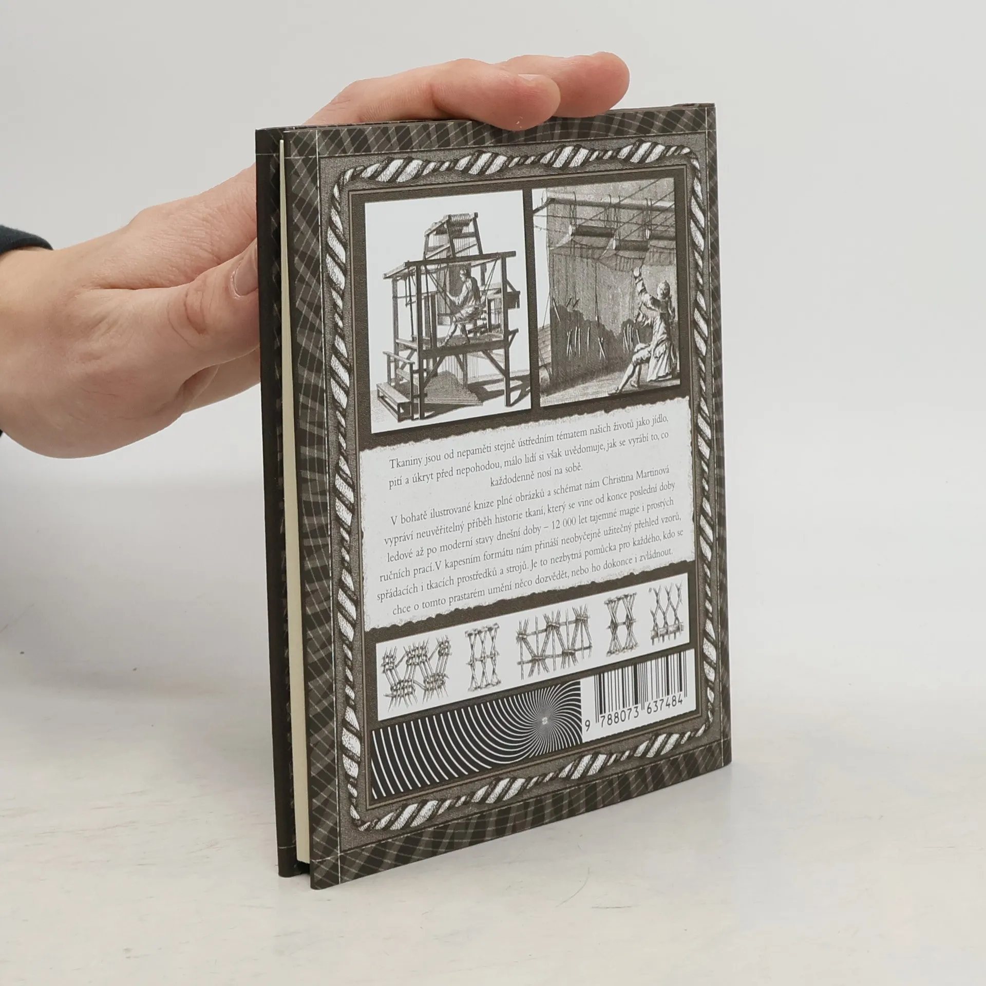 Tkaní ve všech raných kulturách odráželo akt stvoření. Christina Martinová v této nádherné knize předkládá historii, lidové tradice a techniky tkaní napříč různými kulturami. Objasňuje a názorně ilustruje tři základní tkaninové struktury - vazbu plátnovou, keprovou a atlasovou - a také některé nejznámější vzory. Uvádí nás do tradic barvířství, přípravy vlákna a předení spolu s bohatým odkazem mýtů a legend, které tyto činnosti zrodily. Na schematických obrázcích ukazuje konstrukci různých tkalcovských stavů, od jednoduchého tyčkového stavu s popruhem po složitý a revoluční stav žakárový. Tato kniha se může stát neocenitelnou pokladnicí pro všechny, kdo kdy něco pletli, šili nebo tkali.