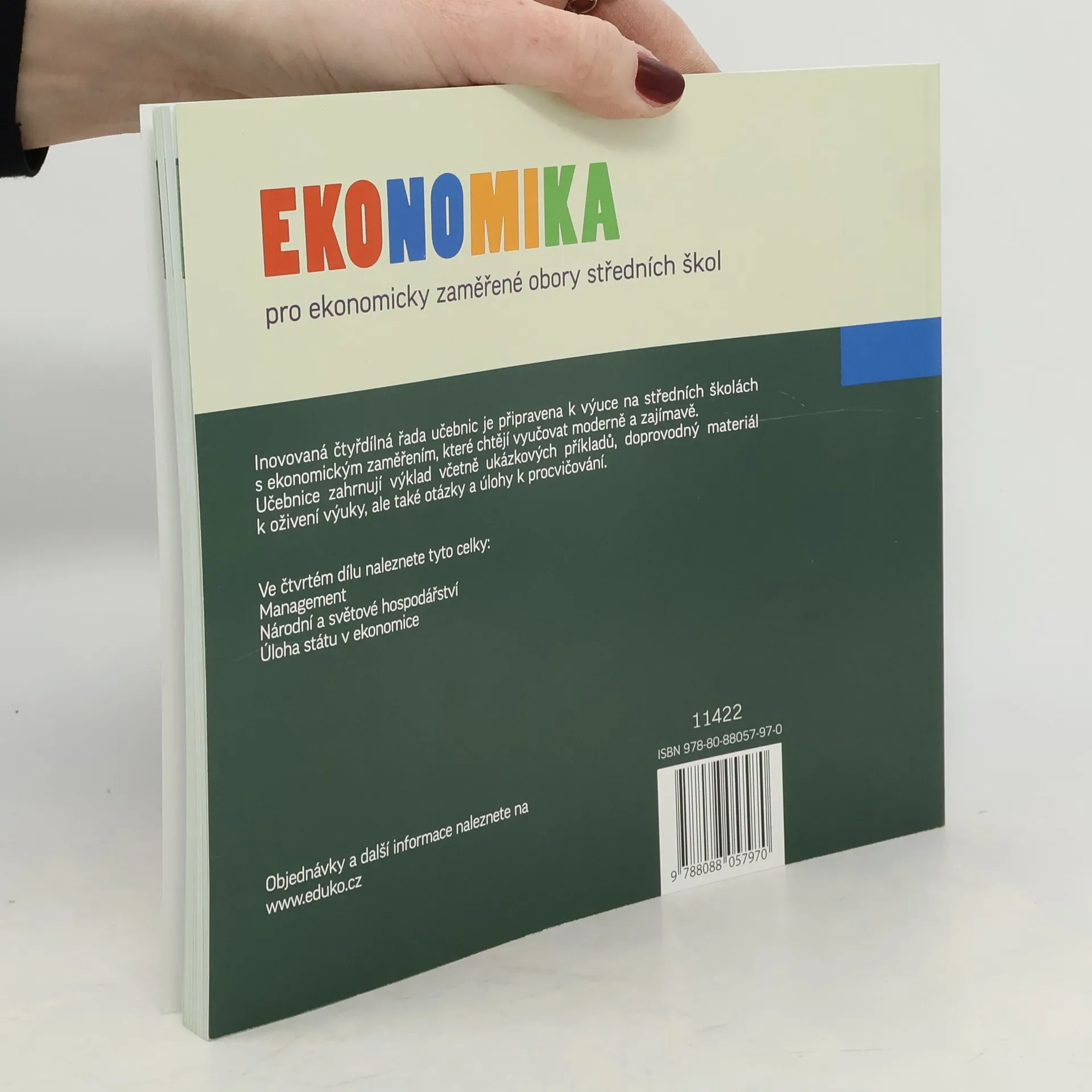 Učebnice má udělenu doložku MŠMT ČR č. j. MSMT-5247/2019-9.Součástí učebnice je elektronická verze, která bude nově rozšířena o myšlenkové mapy.Myšlenkové mapy vytváříme pro studenty jako pomocný materiál pro přípravu na maturitní zkoušku.Obsah učebnice je rozdělen do následujících kapitol:ManagementNárodní a světové hospodářstvíÚloha státu v…