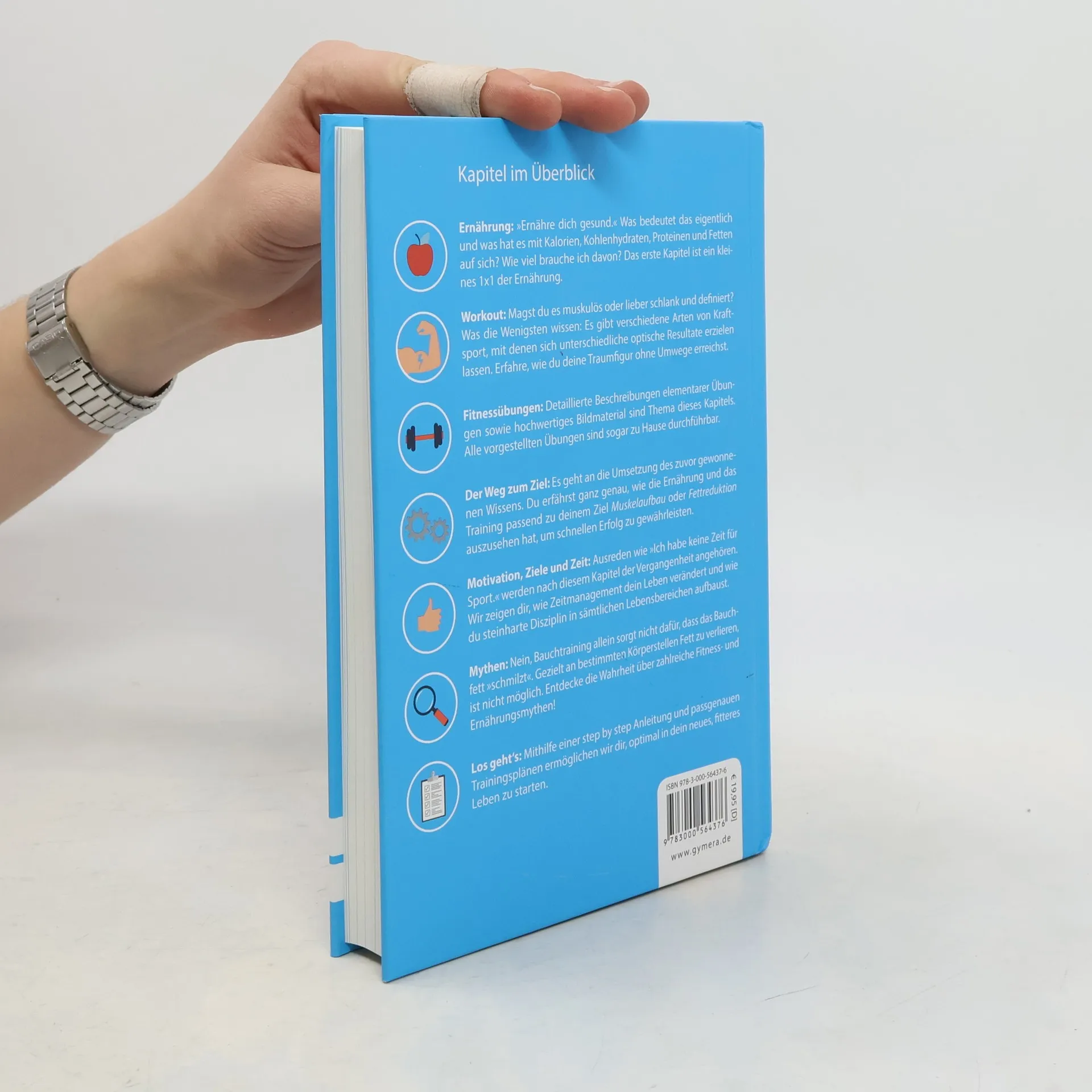 Die Kapitel im Überblick: 1. Ernährung – Was bedeutet gesunde Ernährung? Hier wird erklärt, was Kalorien, Kohlenhydrate, Proteine und Fette sind und wie viel davon benötigt wird. 2. Workout – Bevorzugst du einen muskulösen oder schlanken, definierten Körper? Verschiedene Kraftsportarten führen zu unterschiedlichen Ergebnissen. Erfahre, wie du dein Ziel effizient erreichst. 3. Fitnessübungen – Detaillierte Beschreibungen grundlegender Übungen und qualitativ hochwertiges Bildmaterial stehen im Fokus. Alle Übungen sind auch zu Hause umsetzbar. 4. Der Weg zum Ziel – Hier wird das erlernte Wissen in die Praxis umgesetzt. Du erfährst, wie Ernährung und Training auf dein Ziel, sei es Muskelaufbau oder Fettreduktion, abgestimmt werden, um schnellen Erfolg zu garantieren. 5. Motivation, Ziele & Zeit – Ausreden wie „Ich habe keine Zeit für Sport“ gehören der Vergangenheit an. Lerne, wie Zeitmanagement dein Leben verändert und Disziplin in allen Lebensbereichen aufbaut. 6. Mythen – Es wird aufgeklärt, dass Bauchtraining allein nicht das Bauchfett reduziert und gezielter Fettverlust an bestimmten Körperstellen nicht möglich ist. Entdecke die Wahrheit hinter vielen Fitness- und Ernährungsmythen! 7. Los geht's – Eine Schritt-für-Schritt-Anleitung und erste, auf dein Ziel abgestimmte Trainingspläne helfen dir, optimal in dein neues, fitteres Leben zu starten.
