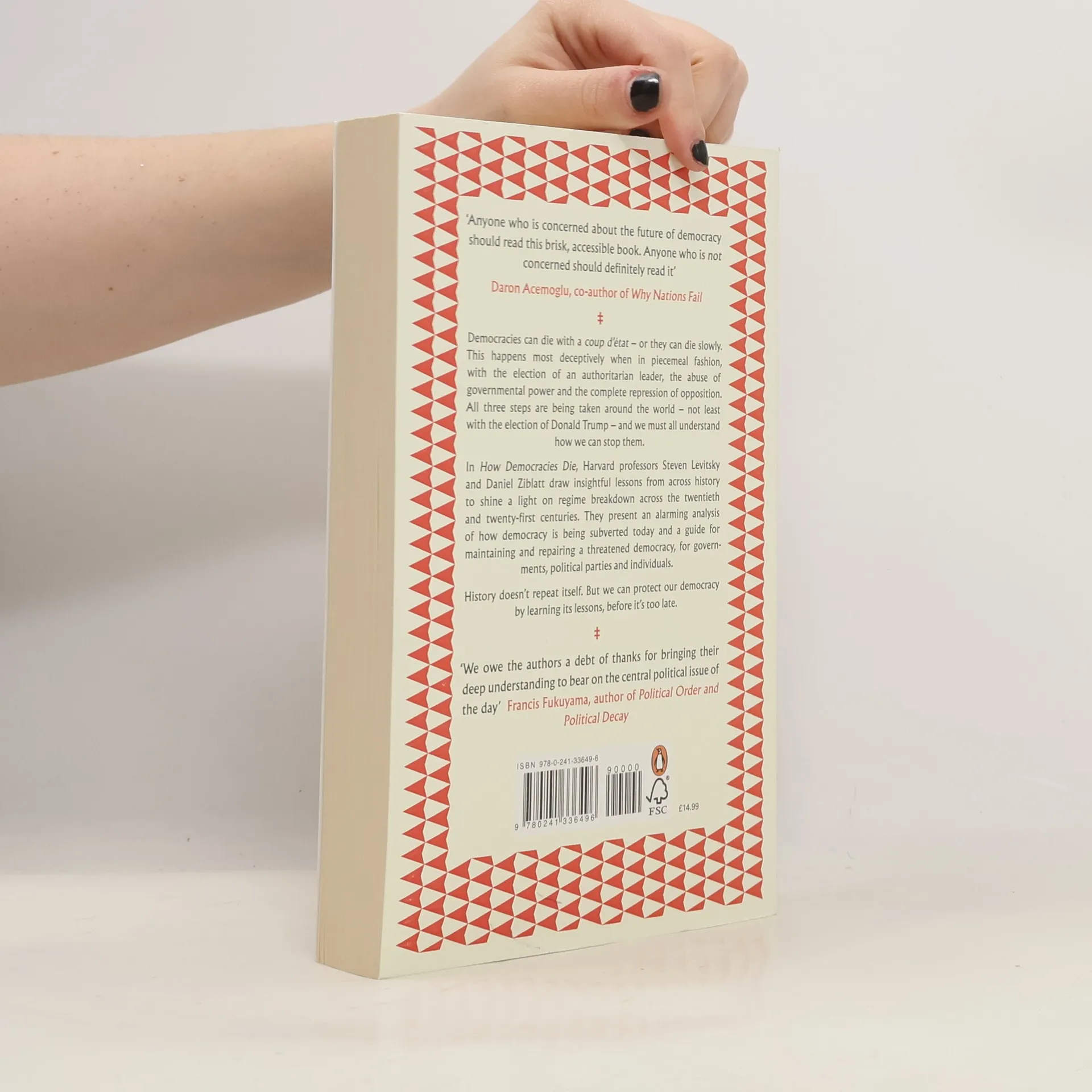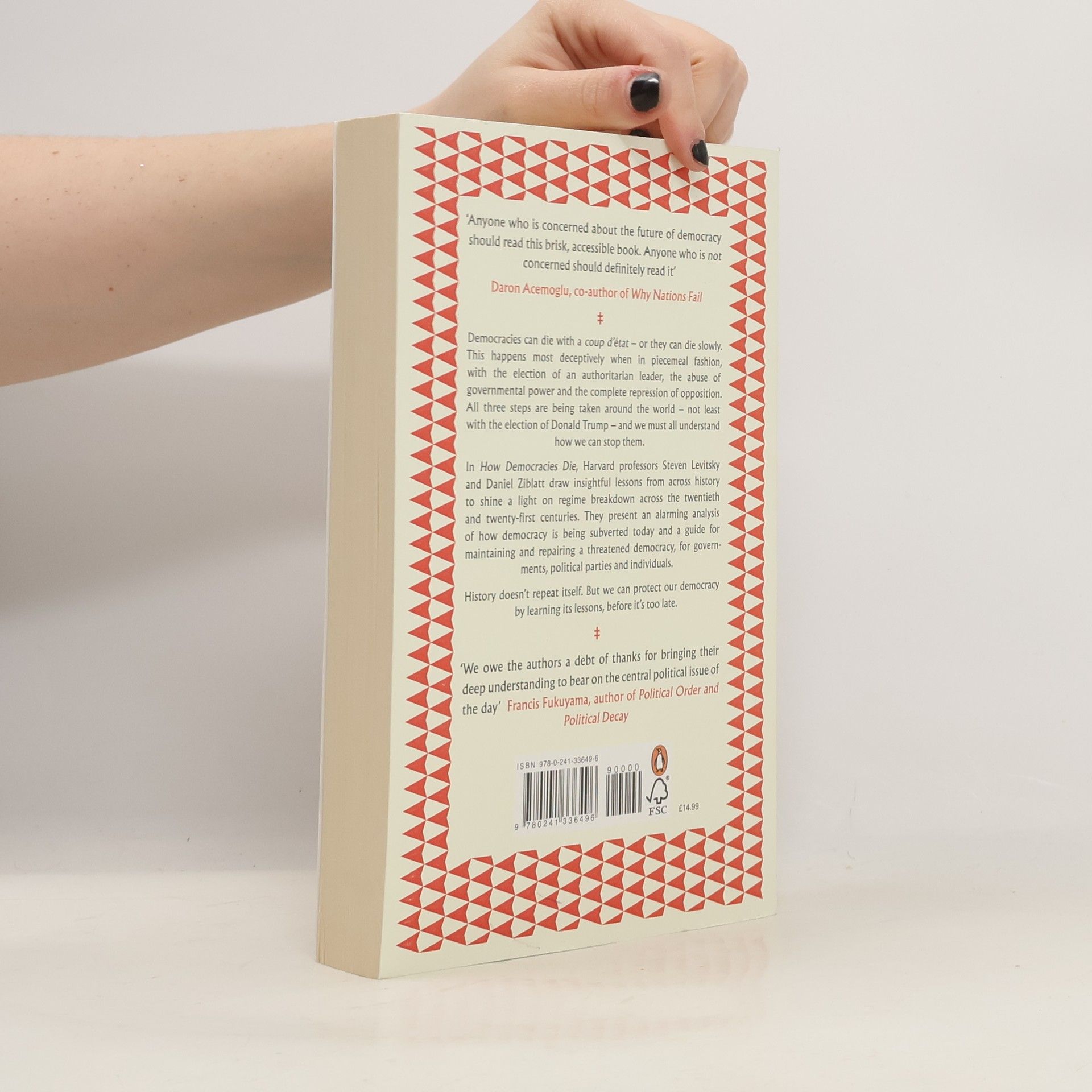 Democracies can die with a coup d'Utat - or they can die slowly. This happens most deceptively when in piecemeal fashion, with the election of an authoritarian leader, the abuse of governmental power and the complete repression of opposition. All three steps are being taken around the world - not least with the election of Donald Trump - and we must all understand how we can stop them. From the reign of General Augusto Pinochet in Chile to the quiet undermining of Turkey's constitutional system by President Recip Erdogan, Harvard professors Steven Levitsky and Daniel Ziblatt draw insightful lessons from across history to shine a light on governmental breakdown across the 20th and 21st centuries - including the dangers of an authoritarian leader faced with a major crisis. Based on years of research, they present a deep understanding of how and why democracies die; an alarming analysis of how democracy is being subverted today in the US and beyond; and a guide for maintaining and repairing a threatened democracy, for governments, political parties and individuals. History doesn't repeat itself. But we can protect our democracy by learning its lessons, before it's too late.