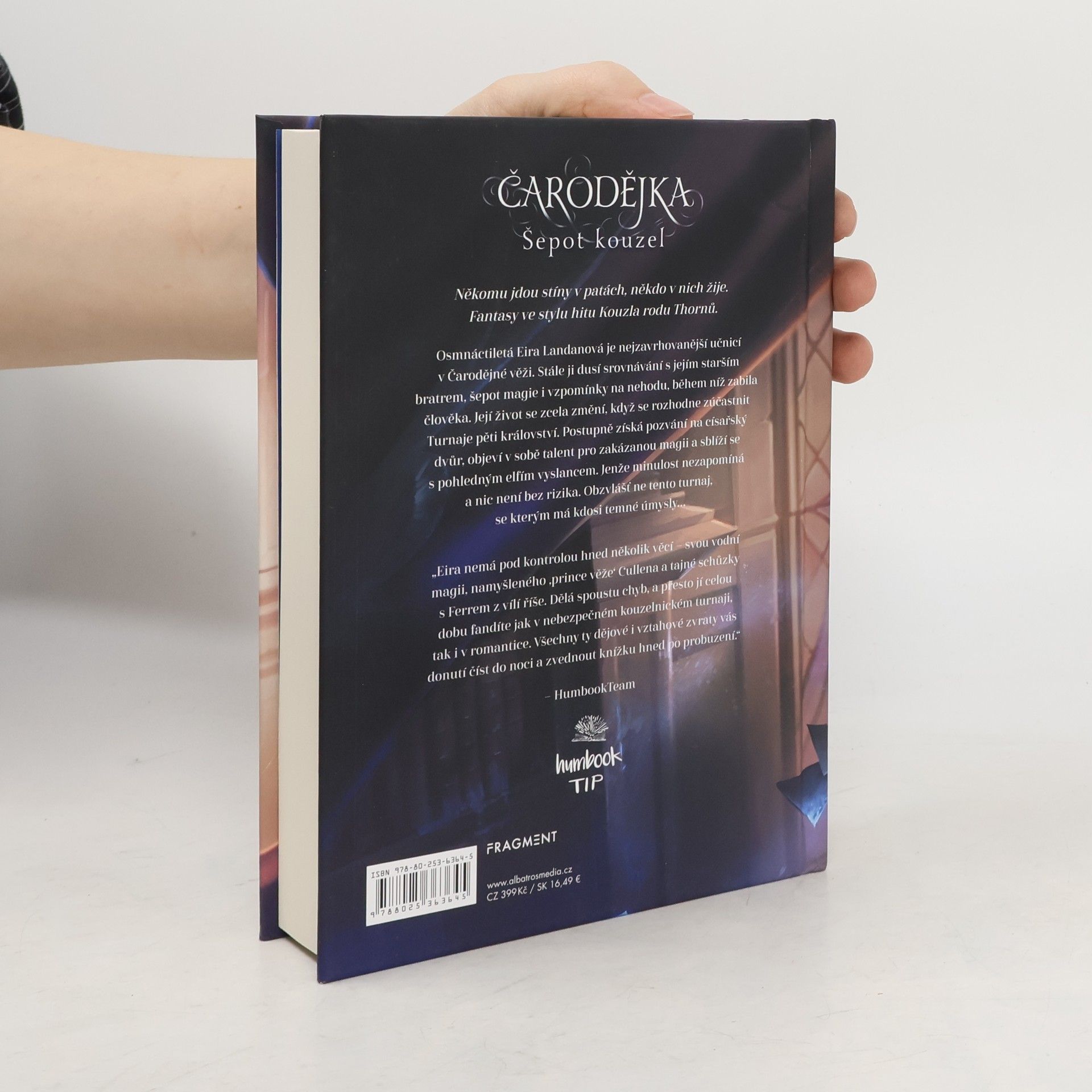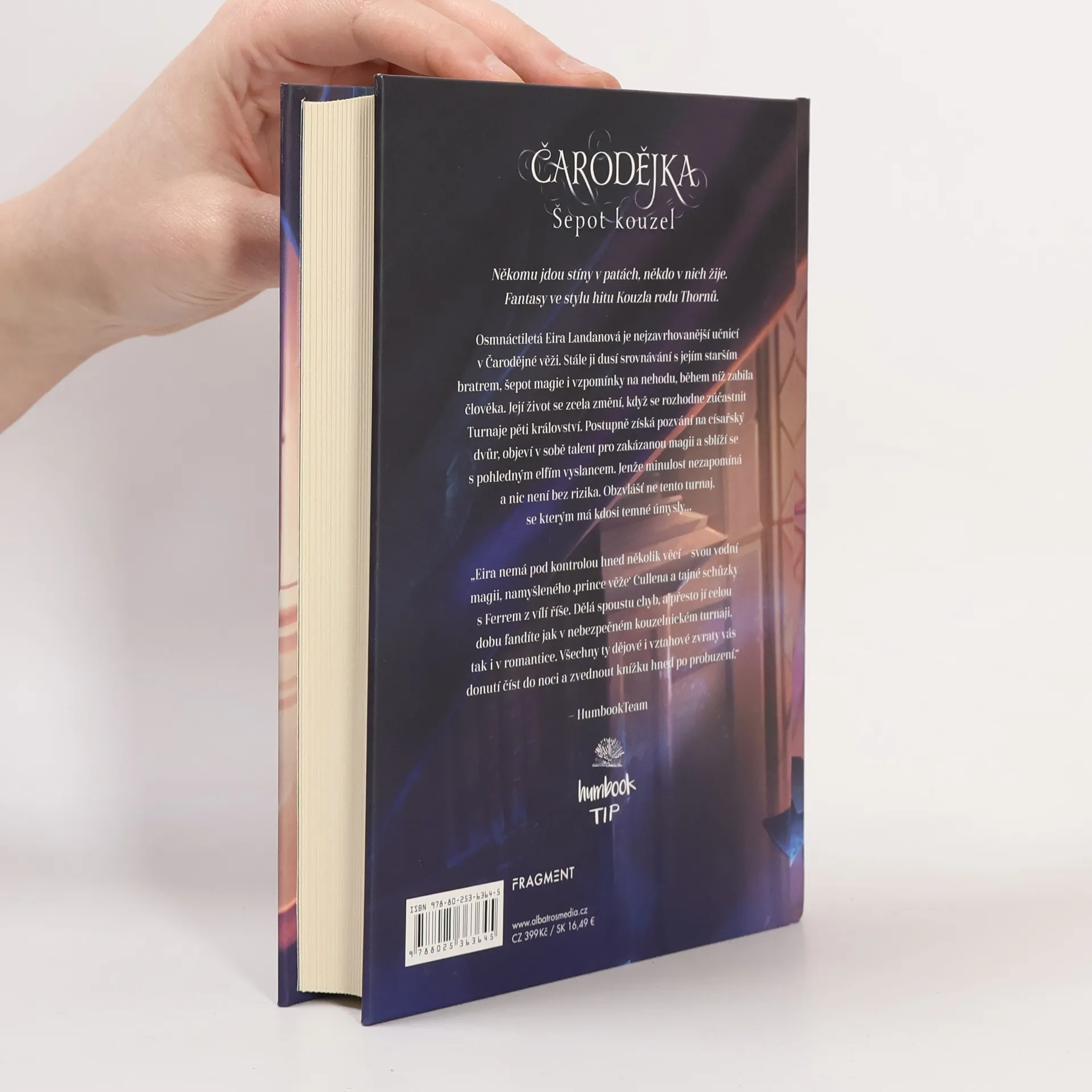 Někomu jdou stíny v patách, někdo v nich žije. Fantasy ve stylu hitu Kouzla rodu Thornů.Osmnáctiletá Eira Landanová je nejzavrhovanější učnicí v Čarodějné věži. Stále ji dusí srovnávání s jejím starším bratrem, šepot magie i vzpomínky na nehodu, během níž zabila člověka. Její život se zcela změní, když se rozhodne zúčastnit Turnaje pěti království. Postupně získá pozvání na císařský dvůr, objeví v sobě talent pro zakázanou magii a sblíží se s pohledným elfím vyslancem. Jenže minulost nezapomíná a nic není bez rizika. Obzvlášť ne tento turnaj, se kterým má kdosi temné úmysly...