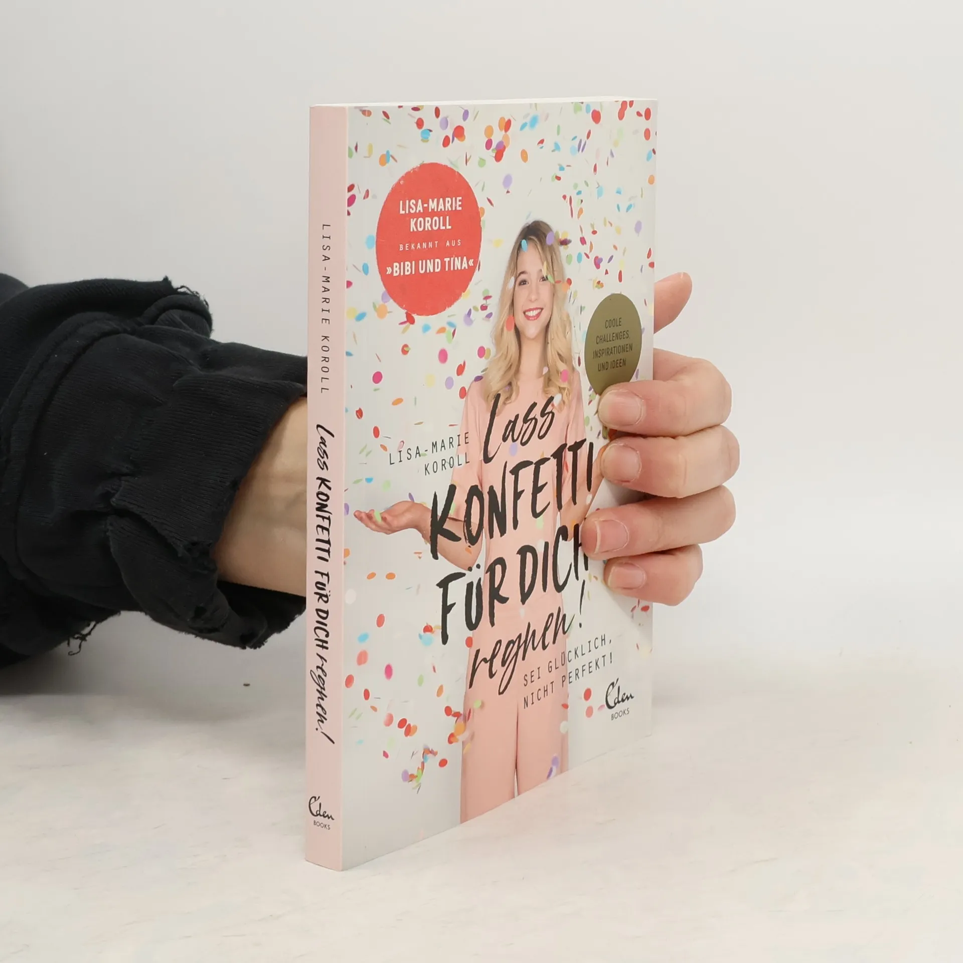 Die 19-jährige Lisa-Marie Koroll ist Teenieliebling Nummer 1 und Instagram-Star! Ihr Schauspieltalent stellte sie bereits in vier »Bibi & Tina«-Filmen unter Beweis – jetzt hat sie ihr erstes Buch veröffentlicht. In »Lass Konfetti regnen!« zeigt sie, dass sie genau die gleichen Dinge beschäftigen wie alle jungen Frauen: Wie lerne ich, mich selbst so zu lieben und zu akzeptieren wie ich bin? Wie finde ich meine Balance im Chaos aus Schule, Hobbys, Social Media und den ganz großen Teenagergefühlen? Und wo soll es eigentlich genau hingehen im Leben? Lisa-Maries Antwort darauf: Mutig sein, Vertrauen haben und sich mit kreativen Challenges einfach mal selbst herausfordern! In ihrem liebevoll gestalteten »Coach-Yourself-Buch« präsentiert die junge Autorin eine bunte Mischung aus Selbstexperimenten, persönlichen Listen und Co., mit denen sie spannende Fakten über sich selbst ans Tageslicht befördert und ihre Leserinnen zum Nachdenken über die eigenen Wünsche und Ziele anregt – dabei interagiert sie regelmäßig mit ihrer Community auf ihrem Instagram-Account. Von Freundschaft, Liebe und Feminismus über Bodyshaming und ein positives Körpergefühl bis hin zu hilfreichen Tipps zur Social-Media-Welt lässt sie kein Thema aus und liefert ihren jugendlichen Fans ein unterhaltsames Inspirationsbuch, um sich selbst kennenzulernen und neu zu erfinden!