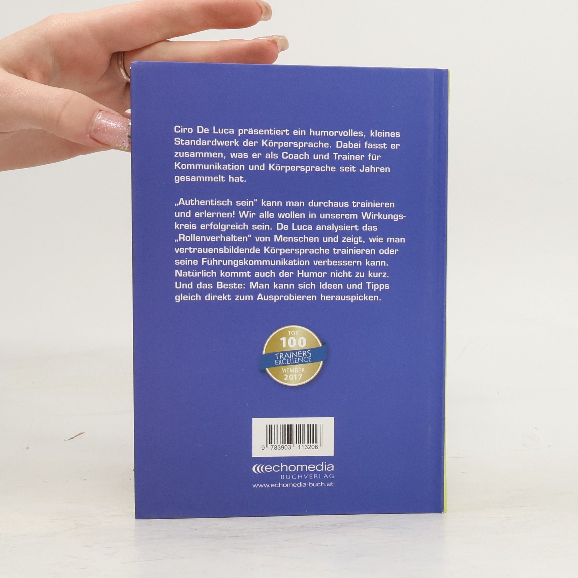 Ciro De Luca präsentiert ein humorvolles, kleines Standardwerk der Körpersprache. Dabei fasst er zusammen, was er als Coach und Trainer für Kommunikation und Körpersprache seit Jahren gesammelt hat „Authentisch sein“ kann man durchaus trainieren und erlernen! Wir alle wollen in unserem Wirkungskreis erfolgreich sein. De Luca analysiert das „Rollenverhalten“ von Menschen und zeigt, wie man vertrauensbildende Körpersprache trainieren oder seine Führungskommunikation verbessern kann. Natürlich kommt auch der Humor nicht zu kurz. Und das Beste: Man kann sich Ideen und Tipps gleich direkt zum Ausprobieren herauspicken.
