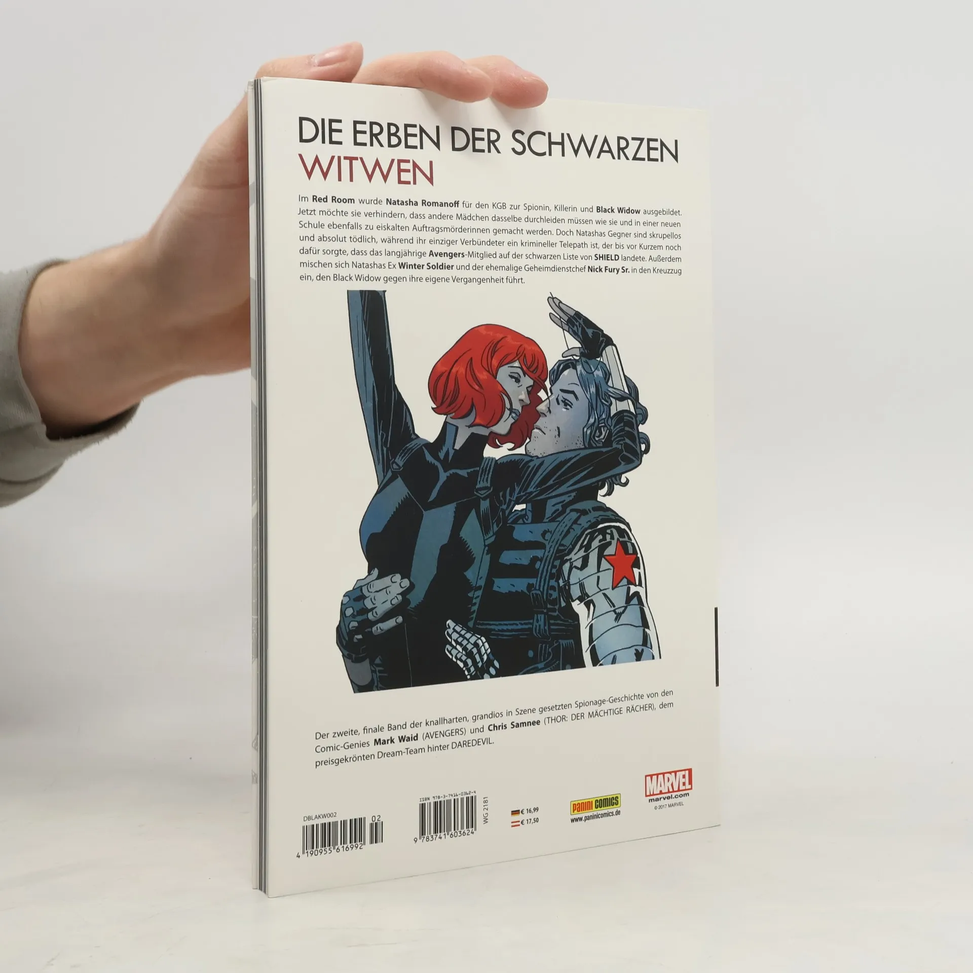 DIE ERBEN DER SCHWARZEN WITWEN Im Red Room wurde Natasha Romanoff für den KGB zur Spionin, Killerin und Black Widow ausgebildet. Jetzt möchte sie verhindern, dass andere Mädchen dasselbe durchleiden müssen wie sie und in einer neuen Schule ebenfalls zu eiskalten Auftragsmörderinnen gemacht werden. Doch Natashas Gegner sind skrupellos und absolut tödlich, während ihr einziger Verbündeter ein krimineller Telepath ist, der bis vor Kurzem noch dafür sorgte, dass das langjährige Avengers-Mitglied auf der schwarzen Liste von SHIELD landete. Außerdem mischen sich Natashas Ex Winter Soldier und der ehemalige Geheimdienstchef Nick Fury Sr. in den Kreuzzug ein, den Black Widow gegen ihre eigene Vergangenheit führt. Der zweite, finale Band der knallharten, grandios in Szene gesetzten Spionage-Geschichte von den Comic-Genies Mark Waid (AVENGERS) und Chris Samnee (THOR: DER MÄCHTIGE RÄCHER), dem preisgekrönten Dream-Team hinter DAREDEVIL.
