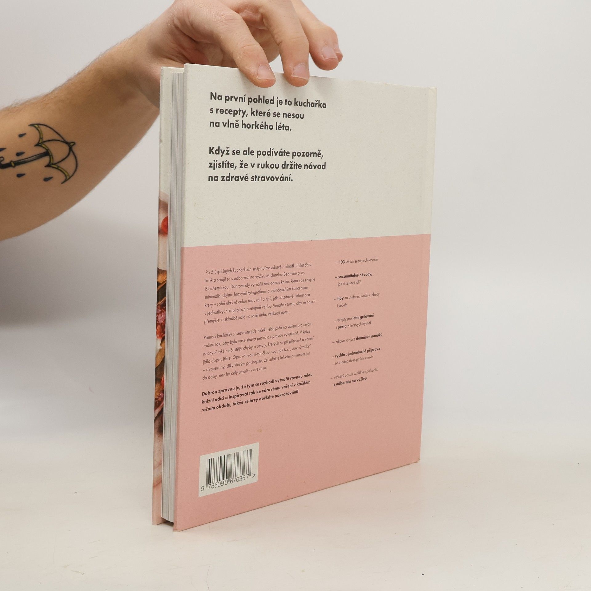 Na první pohled je to kuchařka s recepty, které se nesou na vlně horkého léta. Když se ale podíváte pozorně, zjistíte, že držíte v rukou návod na zdravé stravování. Po 5 úspěšných kuchařkách se tým Jíme zdravě rozhodl udělat další krok a spojil se s odbornicí na výživu Michaelou Bebovou alias Biochemičkou. Dohromady vytvořili knihu, která vás zaujme minimalistickými, hravými fotografiemi a jednoduchým konceptem, který v sobě ukrývá celou řadu rad a tipů, jak jíst zdravě. Informace v jednotlivých kapitolách postupně vedou čtenáře k tomu, aby se naučil přemýšlet o skladbě jídla na talíři nebo velikosti porcí. Pomocí kuchařky si sestavíte jídelníček nebo plán na vaření pro celou rodinu tak, aby byla vaše strava pestrá a opravdu vyvážená. V knize nechybí také nejčastější chyby a omyly, kterých se při přípravě a vaření jídla dopouštíme. Opravdovou třešničkou jsou pak tzv. „srovnávačky“ – dvoustrany, díky kterým pochopíte, že salát je lehkým pokrmem jen do doby, než ho celý utopíte v dresinku. Na co se v kuchařce těšit? * 103 letních sezónních receptů * srozumitelné návody, jak si sestavit talíř * tipy na snídaně, svačiny, obědy i večeře * recepty pro letní grilování i pesta z čerstvých bylinek * zdravé variace domácích nanuků * rychlá a jednoduchá příprava ze snadno dostupných surovin *veškerý obsah vznikl ve spolupráci s odbornicí na výživu?