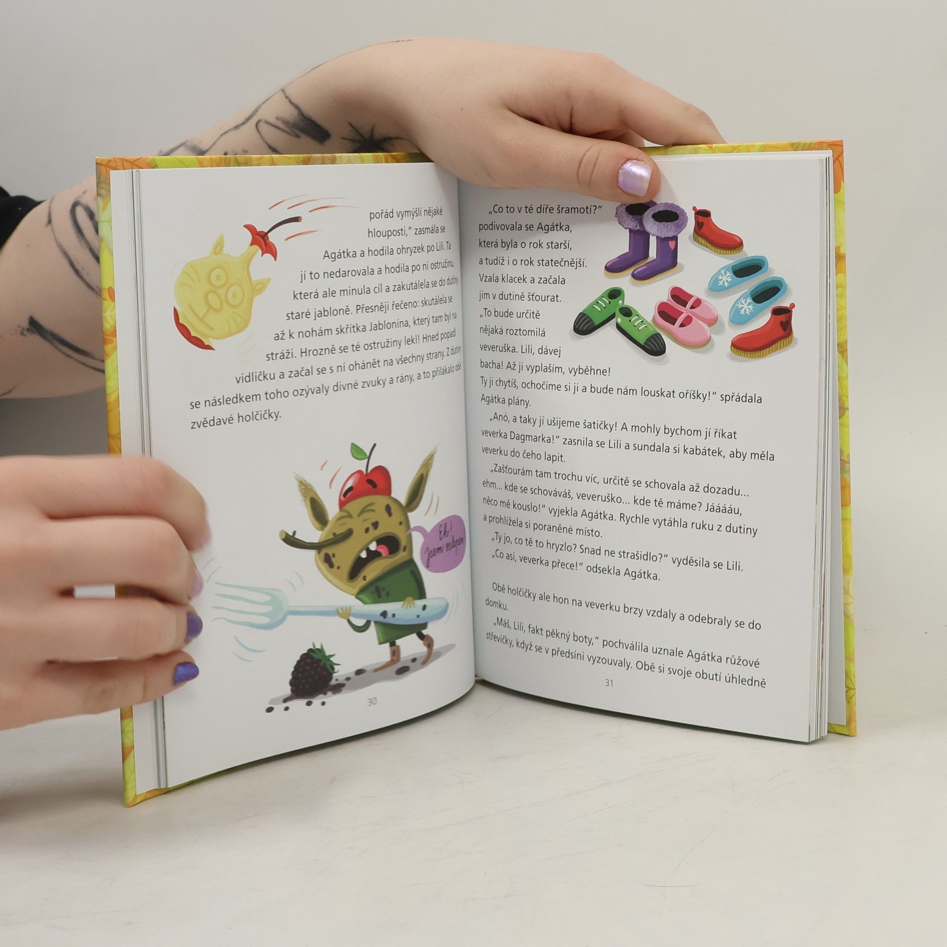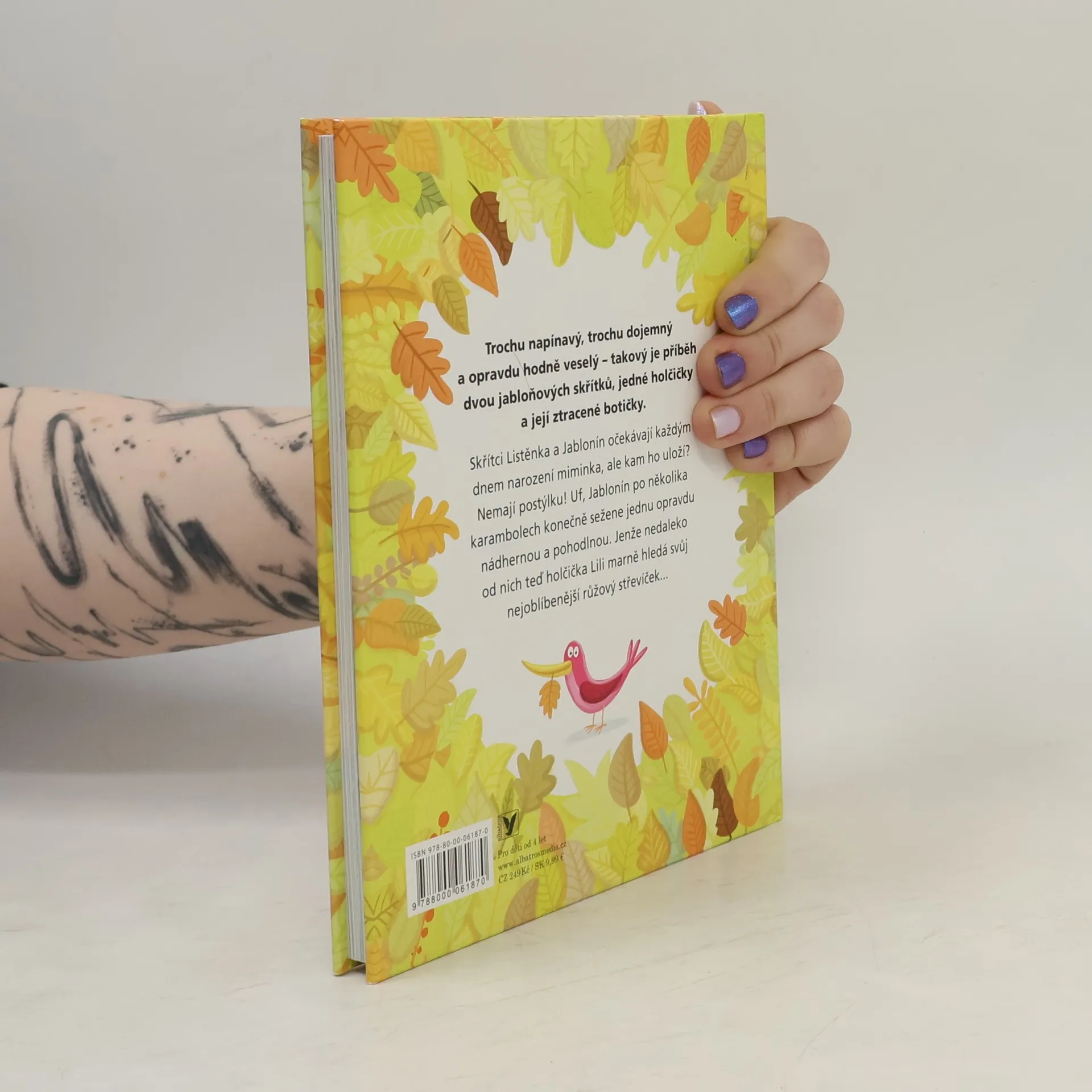 Trochu napínavý, trochu dojemný a opravdu hodně veselý - takový je příběh dvou jabloňových skřítků, jedné holčičky a její ztracené botičky. Skřítci Listěnka a Jablonín očekávají každým dnem narození miminka, ale kam ho uloží? Nemají postýlku! Uf, Jablonín po několika karambolech konečně sežene trpasličímu nemluvněti jednu opravdu nádhernou a pohodlnou. Jenže nedaleko od nich teď holčička Lili marně hledá svůj nejoblíbenější růžový střevíček...