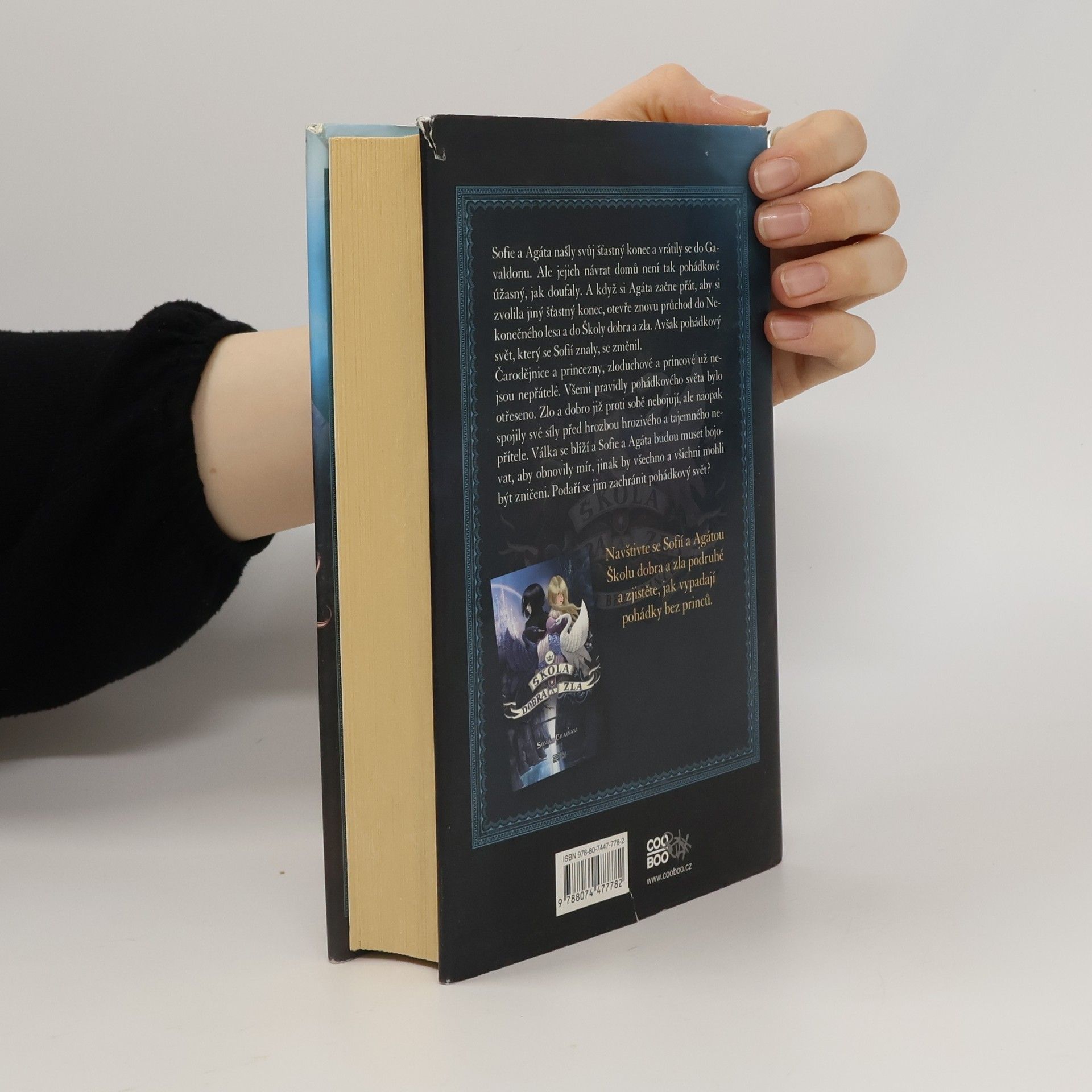 Pokračování úspěšné Školy dobra a zla, tentokrát ve světě bez princů. Sofie a Agáta našly svůj šťastný konec a vrátily se do Gavaldonu. Ale jejich návrat domů není tak pohádkově úžasný, jak doufaly. A když si Agáta začne přát, aby si zvolila jiný šťastný konec, otevře znovu brány do světa Školy dobra a zla. Ale pohádkový svět, který se Sofií znaly, se změnil. Čarodějnice a princezny, zloduchové a princové už nejsou nepřátelé. Všemi pravidly pohádkového světa bylo otřeseno. Zlo a dobro již proti sobě nebojuje, ale naopak spojily své síly před hrozbou hrozivého a tajemného nepřítele. Válka se blíží a Sofie a Agáta budou muset bojovat, aby obnovily mír, jinak by všechno a všichni mohli být zničeni. Podaří se jim zachránit pohádkový svět? První vydání. -- zdroj: legie.info --