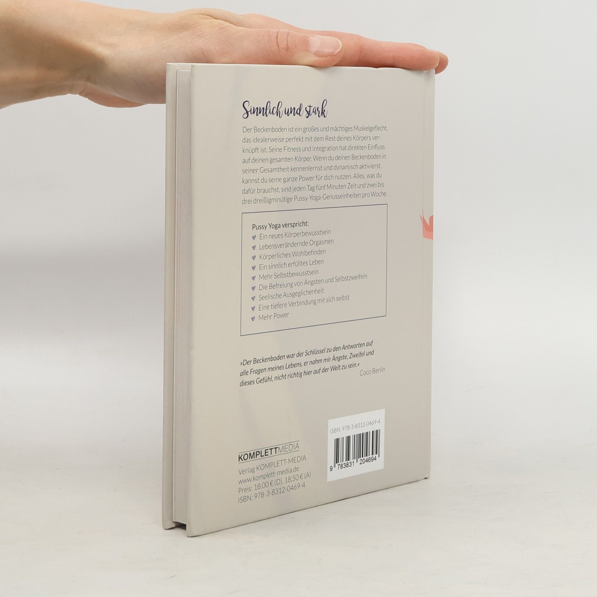 Coco Berlin will Frauen ihre natürliche Weiblichkeit zurück geben, indem sie den Beckenboden ins Zentrum der Wahrnehmung rückt. Durch das sanfte Training der Beckenbodenmuskulatur lernt die Frau ihren Körper neu kennen und sich selbst lieben. Ausgehend von der weiblichen Anatomie, erklärt Coco Berlin die Rolle des Beckenbodens als Schlüssel zu seelischer Ausgeglichenheit und körperlichem Wohlbefinden. Ein trainierter Beckenboden steigert das allgemeine Energielevel, minimiert Ängste und Zweifel und fördert die Verbundenheit zu sich selbst. Das Training verhilft außerdem zu mehr Selbstbewusstsein, Kreativität und sinnlichem und erfüllendem Sex. Es macht die Vagina auf eine kraftvolle Art fit, straff und feinfühlig. Zudem bekommen alle weiblichen Organe und die Blase ein natürliches Organ-Lifting. Die Übungen sorgen für eine gute Durchblutung und eine bessere neuronale Verbindung zum Gehirn, was für guten Sex und erfüllende Orgasmen unerlässlich ist.