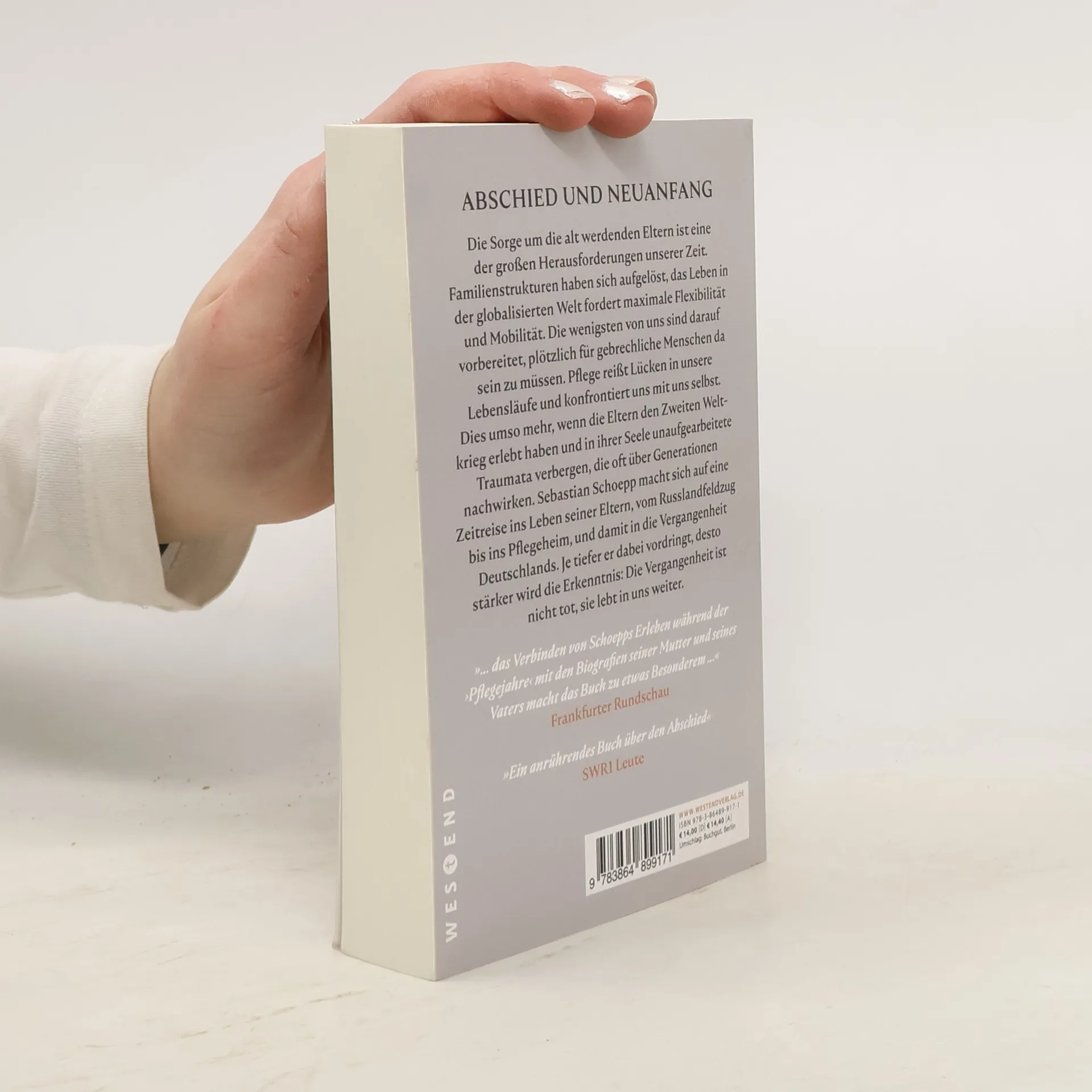 Die Sorge um die alt werdenden Eltern ist eine der großen Herausforderungen unserer Zeit. Familienstrukturen haben sich aufgelöst, das Leben in der globalisierten Welt fordert maximale Flexibilität und Mobilität. Die wenigsten von uns sind darauf vorbereitet, plötzlich für gebrechliche Menschen da sein zu müssen. Pflege reißt Lücken in unsere Lebensläufe und konfrontiert uns mit uns selbst. Dies umso mehr, wenn die Eltern den Zweiten Weltkrieg erlebt haben und in ihrer Seele unaufgearbeitete Traumata verbergen, die oft über Generationen nachwirken. Sebastian Schoepp macht sich auf eine Zeitreise ins Leben seiner Eltern, vom Russlandfeldzug bis ins Pflegeheim, und damit in die Vergangenheit Deutschlands. Je tiefer er dabei vordringt, desto stärker wird die Erkenntnis: Die Vergangenheit ist nicht tot, sie lebt in uns weiter.